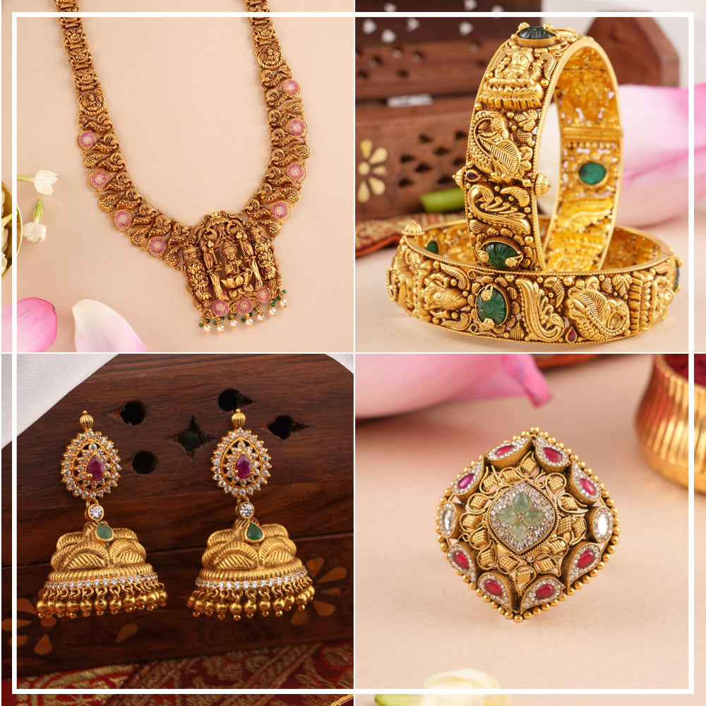 ● Gold:Elegant pieces like necklaces, bracelets, and statement harams, designed for every Tamil occasion.