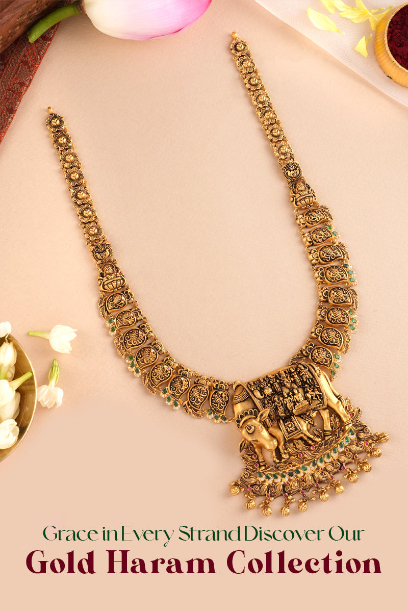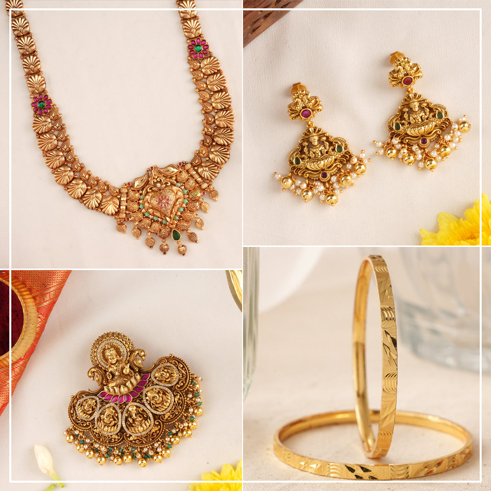● Gold:Elegant pieces like necklaces, bracelets, and statement harams, designed for every Tamil occasion.