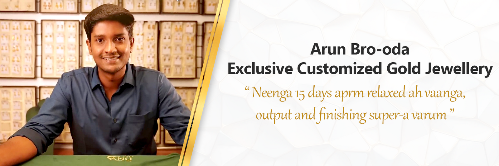 Since 1997, Sri Anu Jewellers Madurai has been weaving tradition with modern artistry to create jewellery that captures who you are. Our founder, Arun, brings a personal touch to every design, ensuring quality craftsmanship and a warm experience for each customer. At the heart of what we do is our Gold Customization Service made right here in our showroom in Madurai. Whether it's intricate traditional motifs or sleek minimalist styles, we bring your dream designs to life especially our beloved couple rings that hold meaning beyond beauty.
