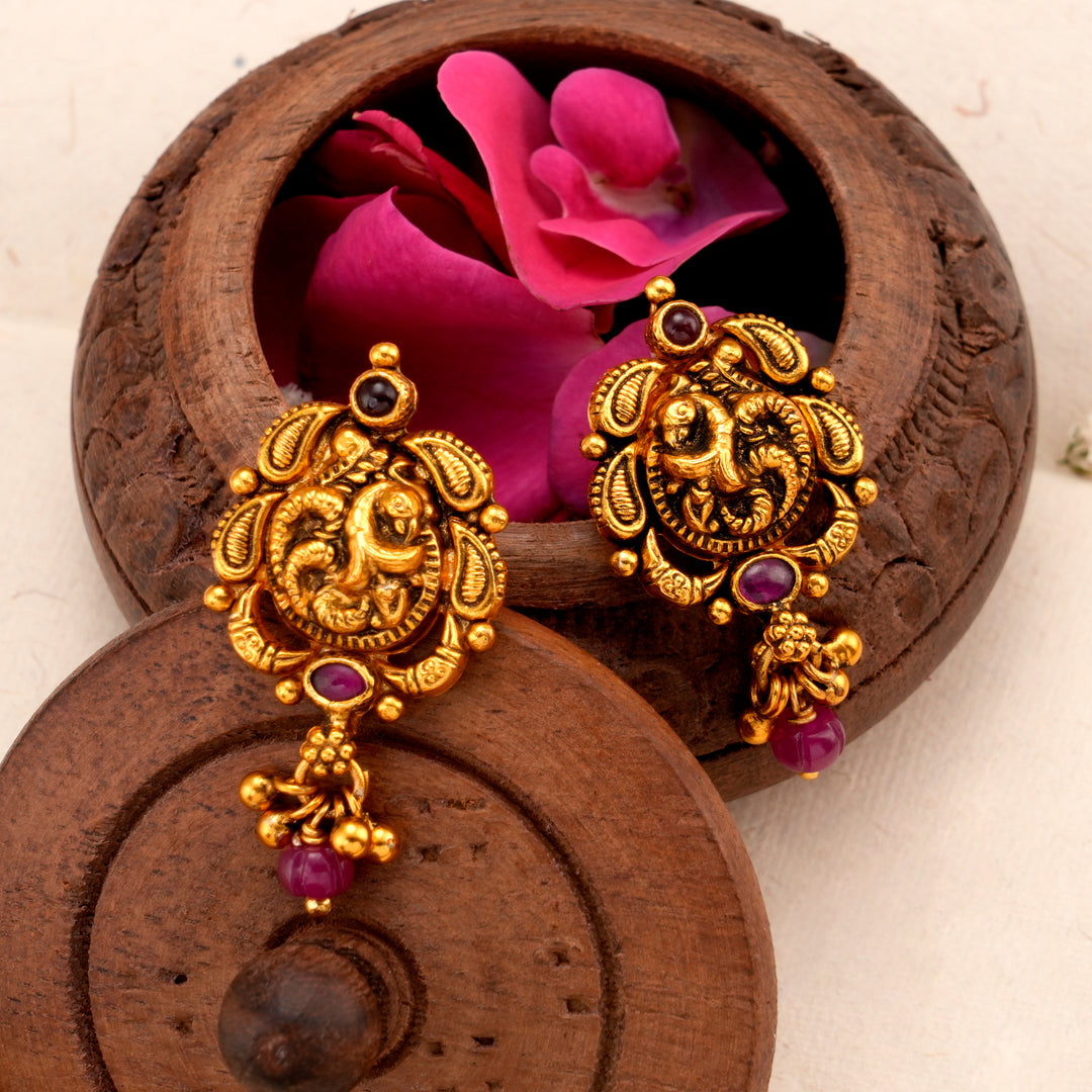 Enamel Peacock with Traditional Bell Drop Jhumkas