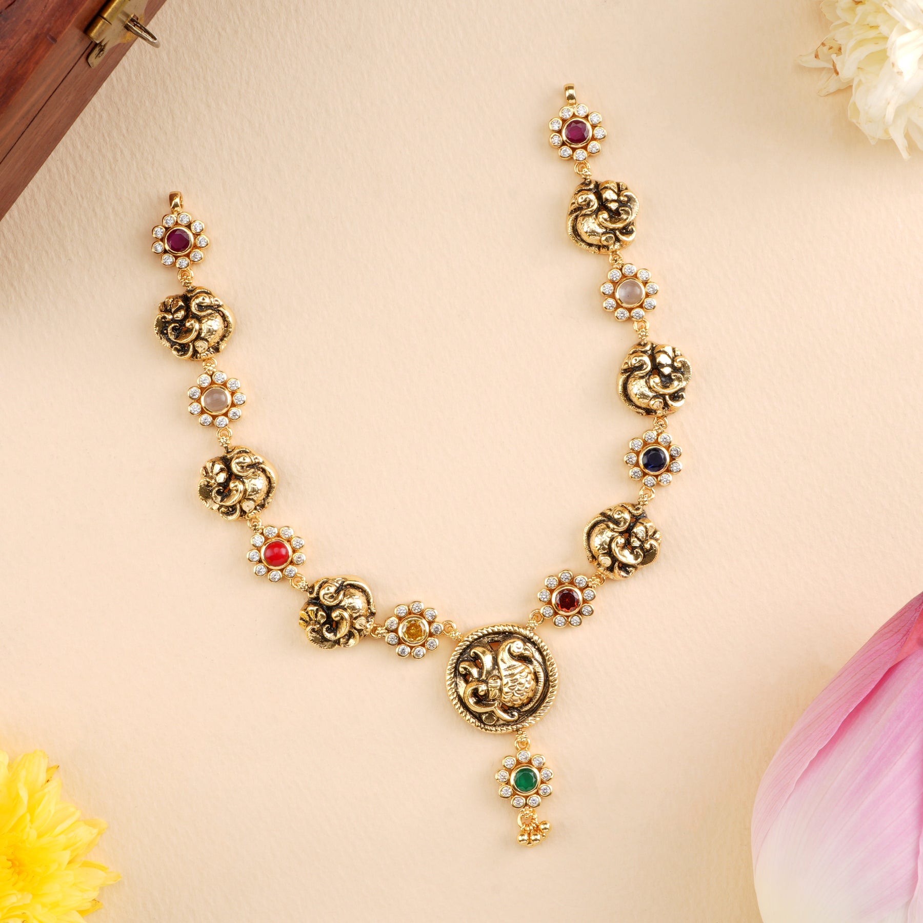 • Pair with navaratna earrings for a complete look.