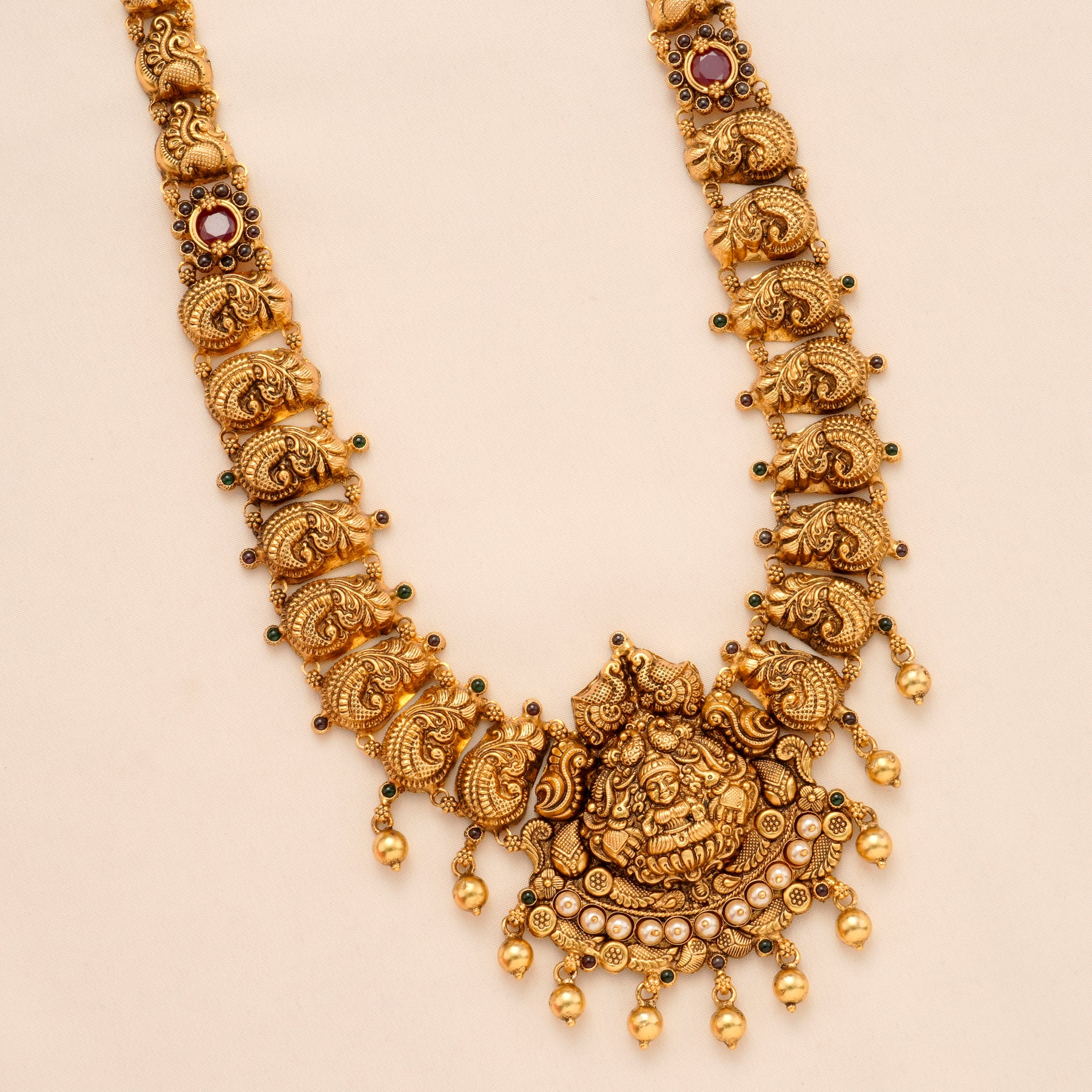 Devotional Lakshmi Peacock Golden Drop Haram
