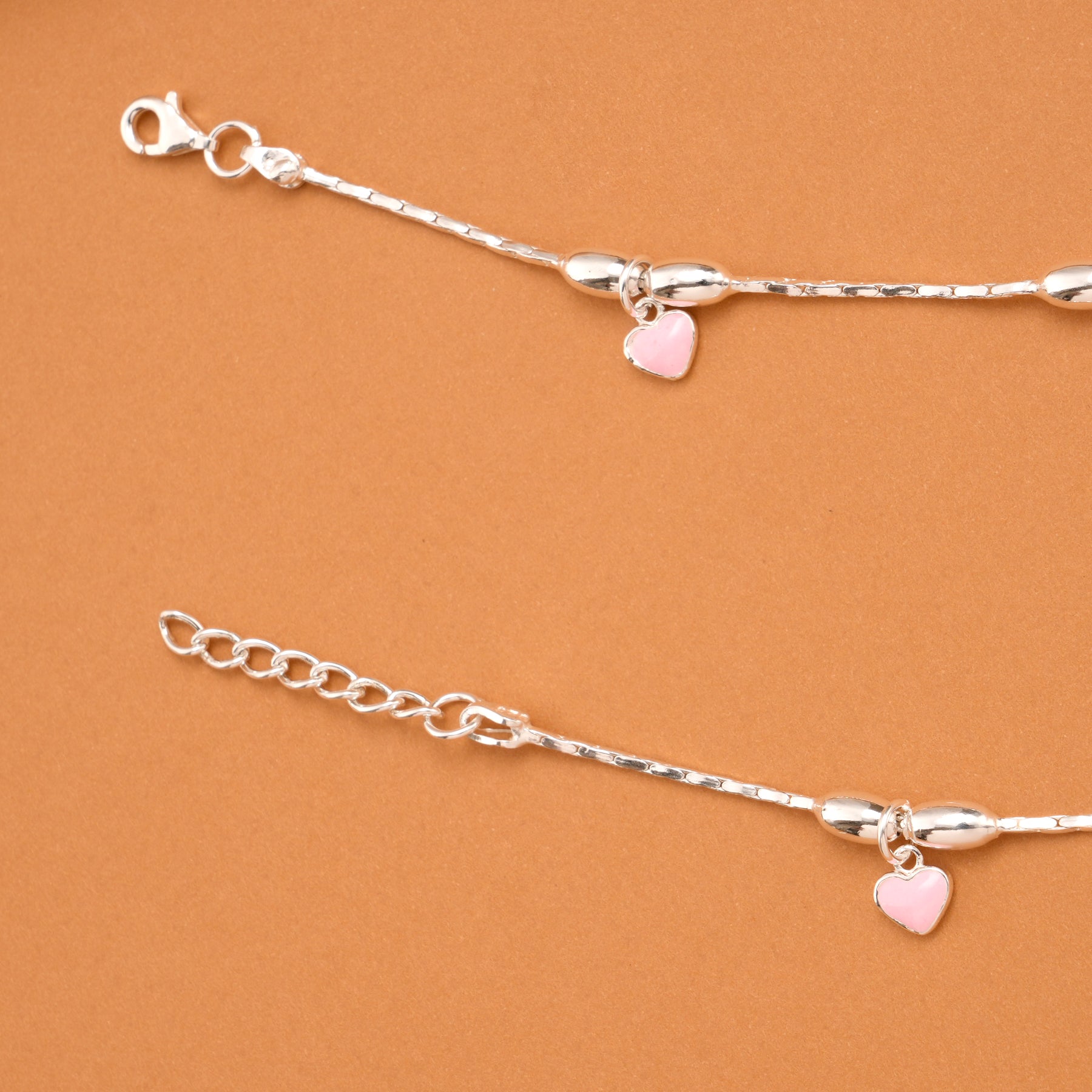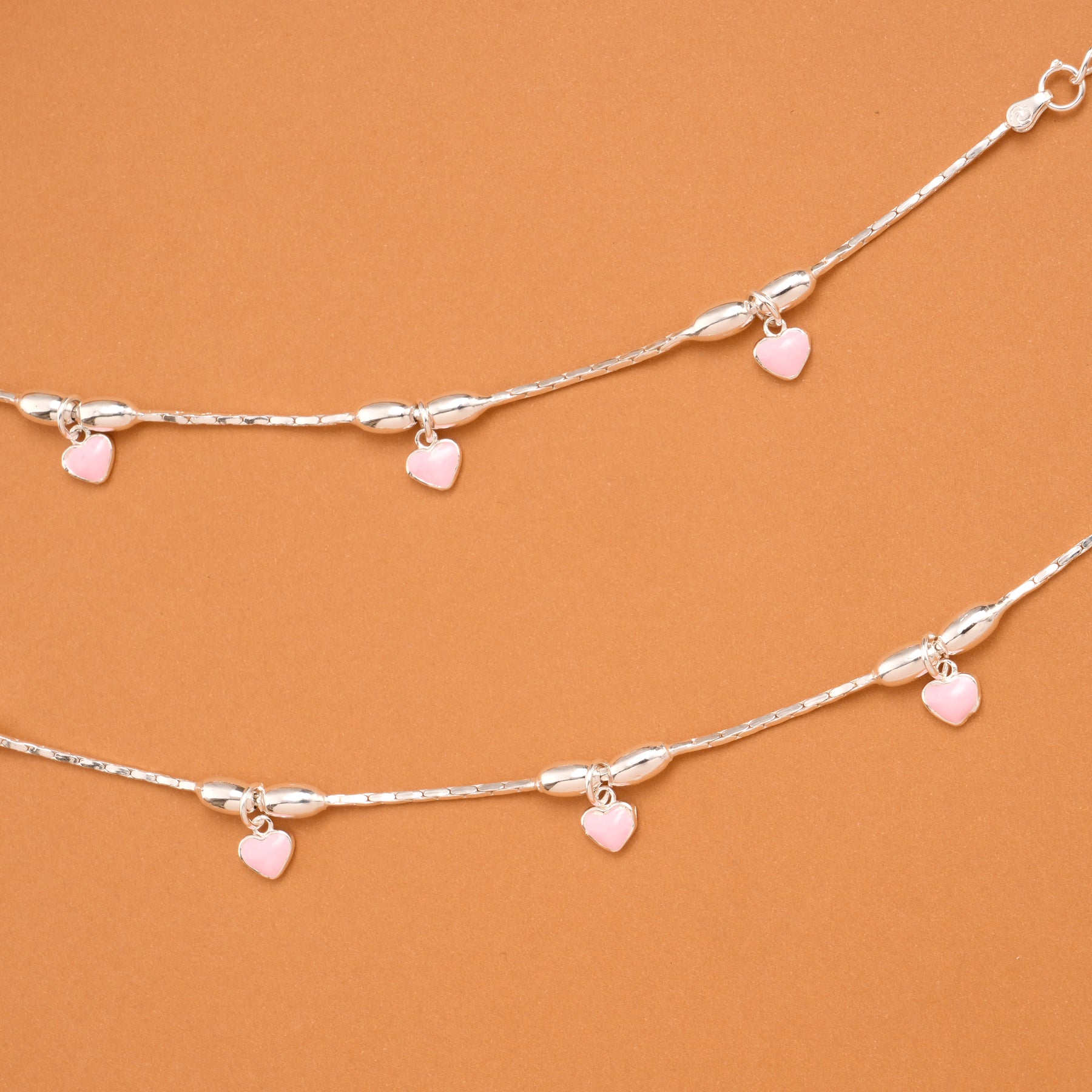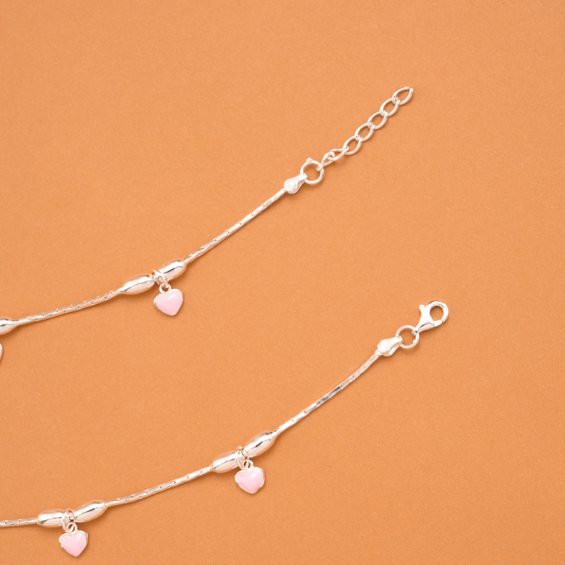 Made in 92.5 Silver, these baby anklets feature pink heart charms, offering a simple cute design with smooth detailing and a soft elegant finish.