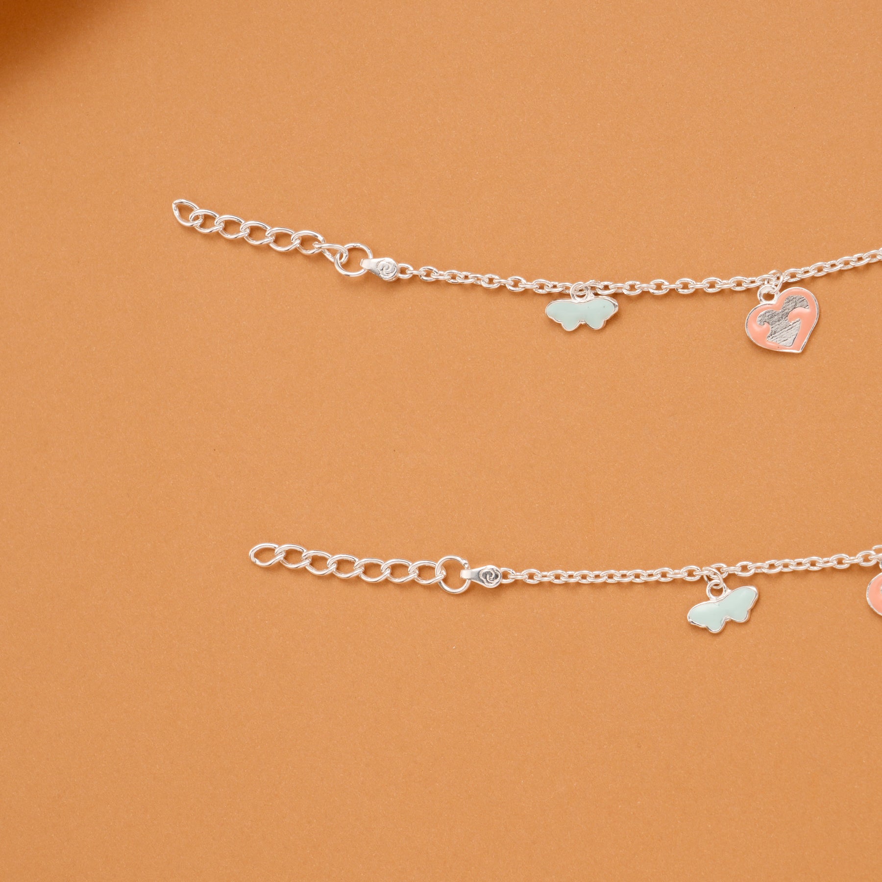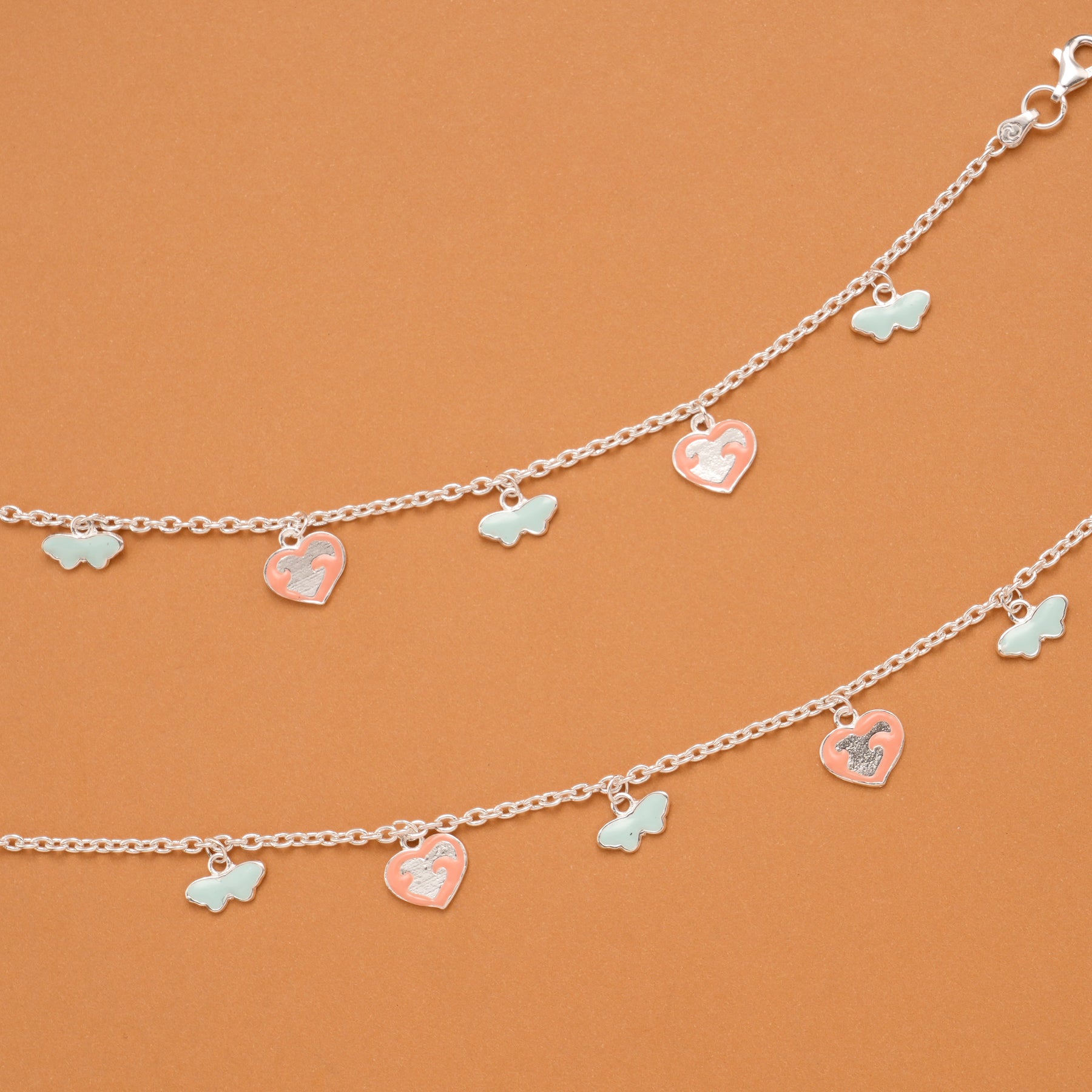 Crafted in 92.5 Silver, these baby anklets feature heart and butterfly enamel charms, offering a cute colourful design with smooth finish and soft playful elegance.