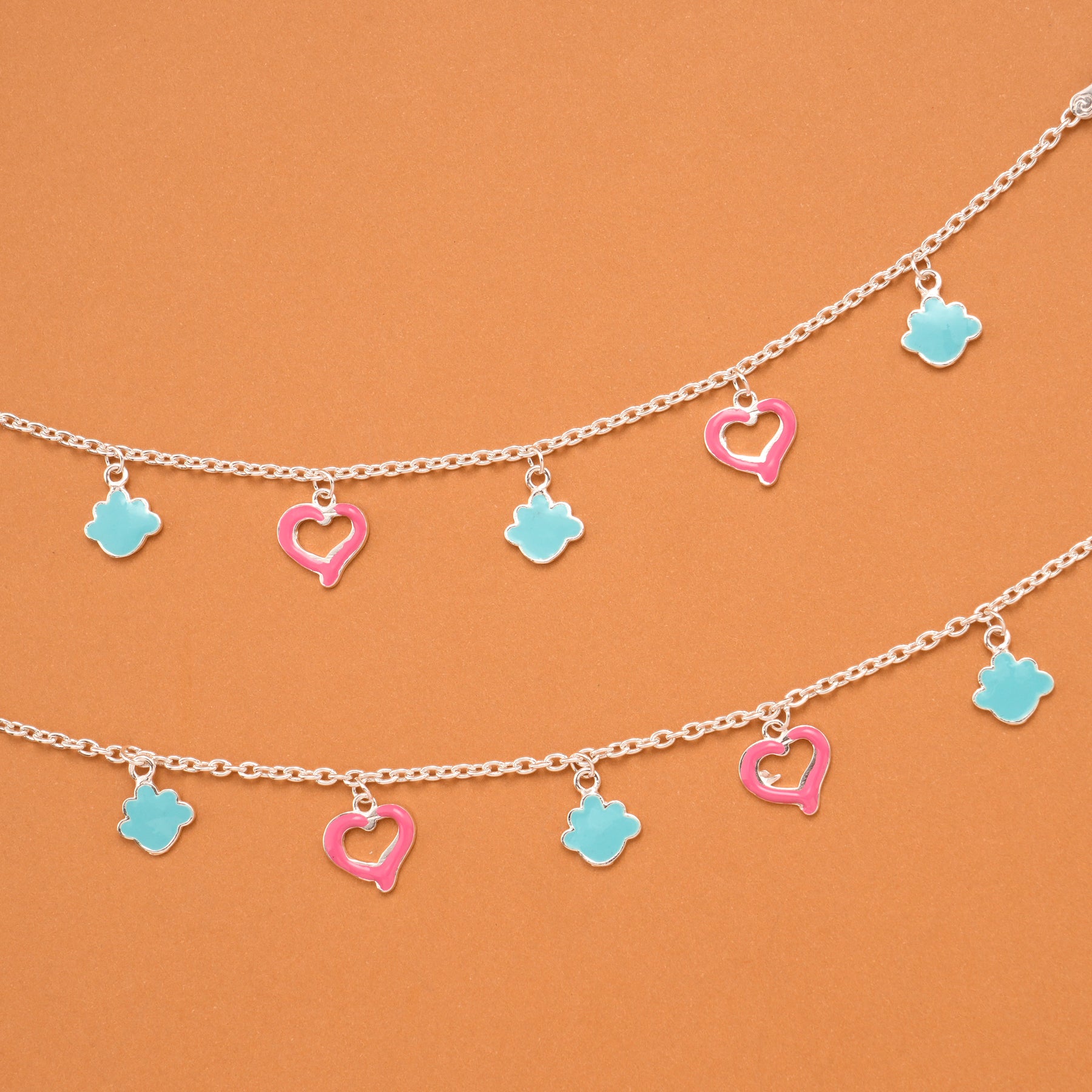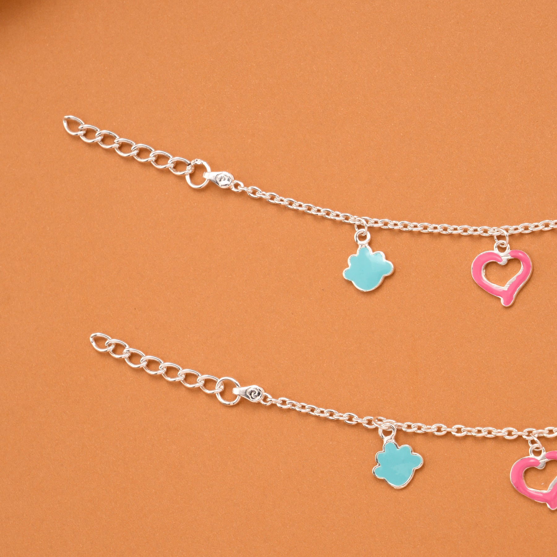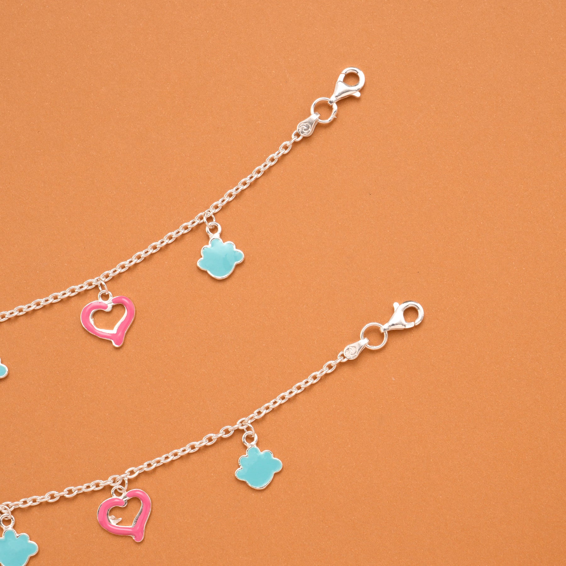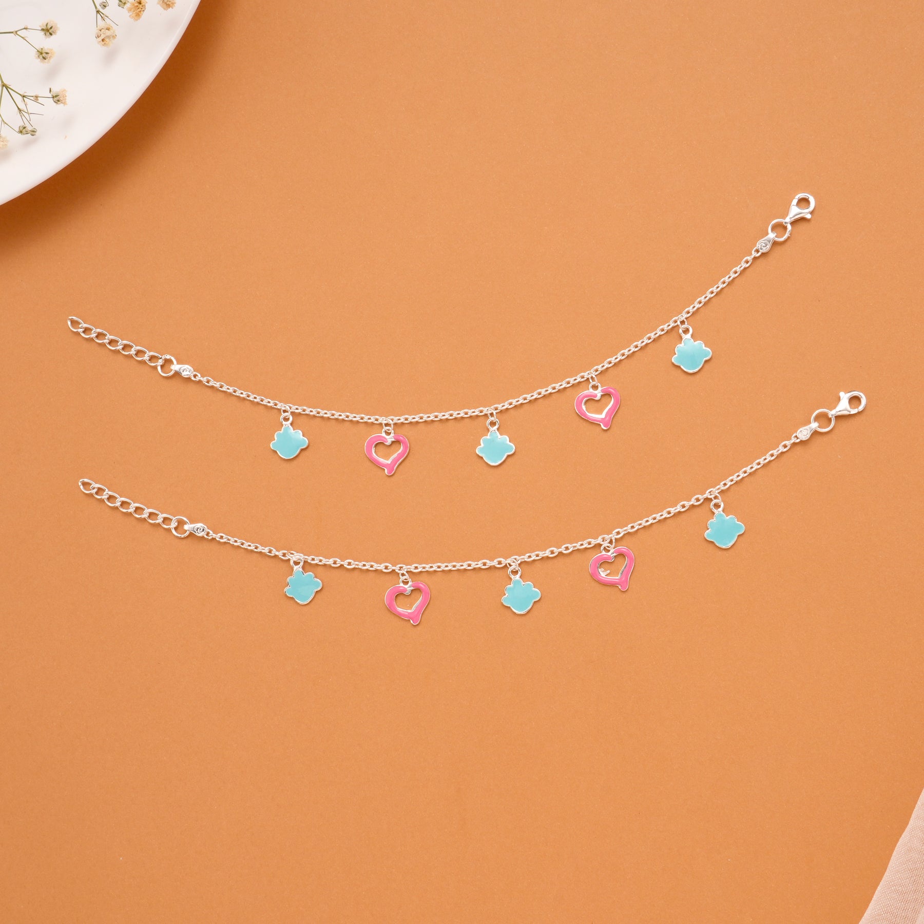 Crafted in 92.5 Silver, these baby anklets feature pink enamel heart charms, offering a soft cute design with smooth finish, gentle shine and comfortable everyday wear.