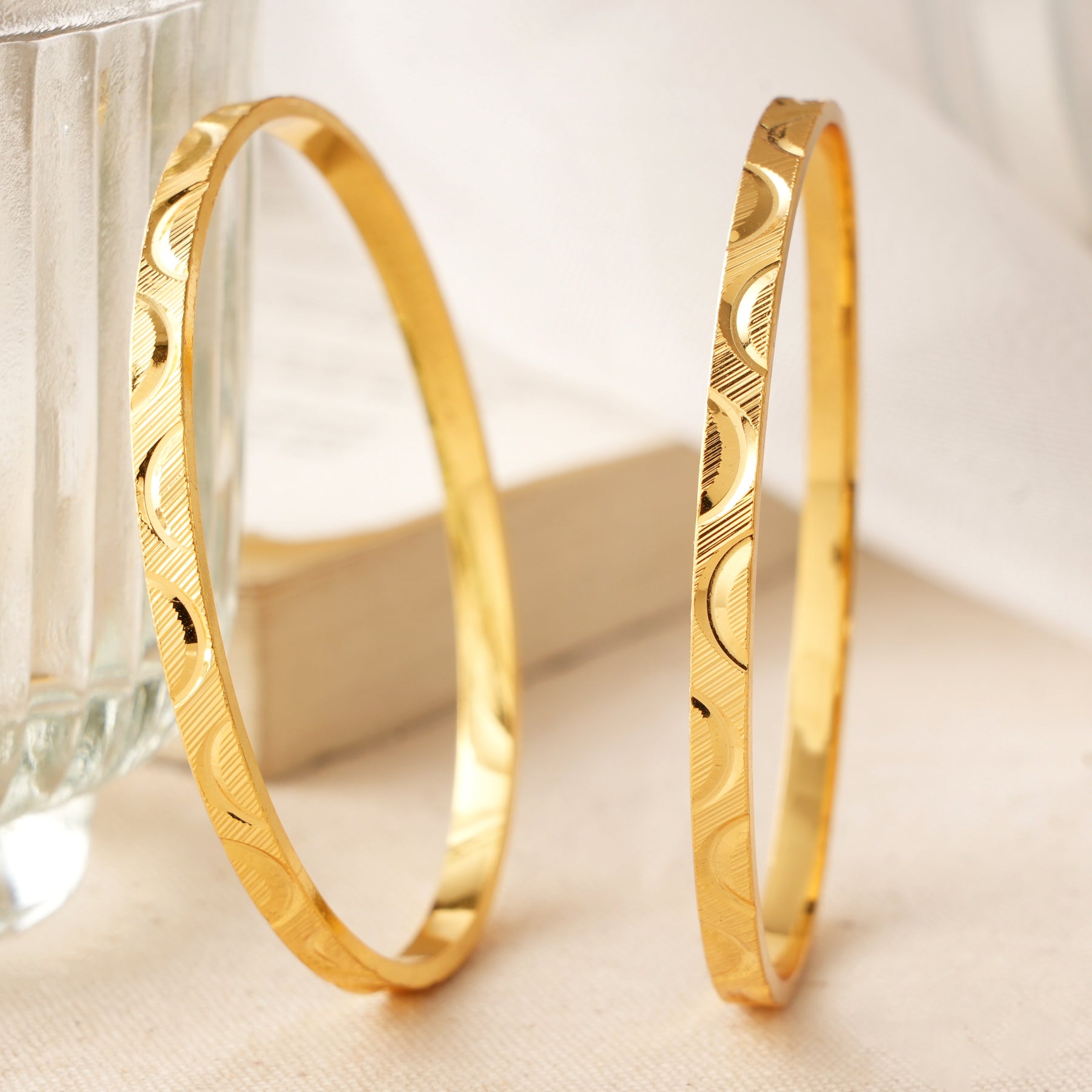 Made of 92.5 silver with a gold-plated finish, this bangle features a unique half-circle pattern. Perfect for gifting and traditional occasions.