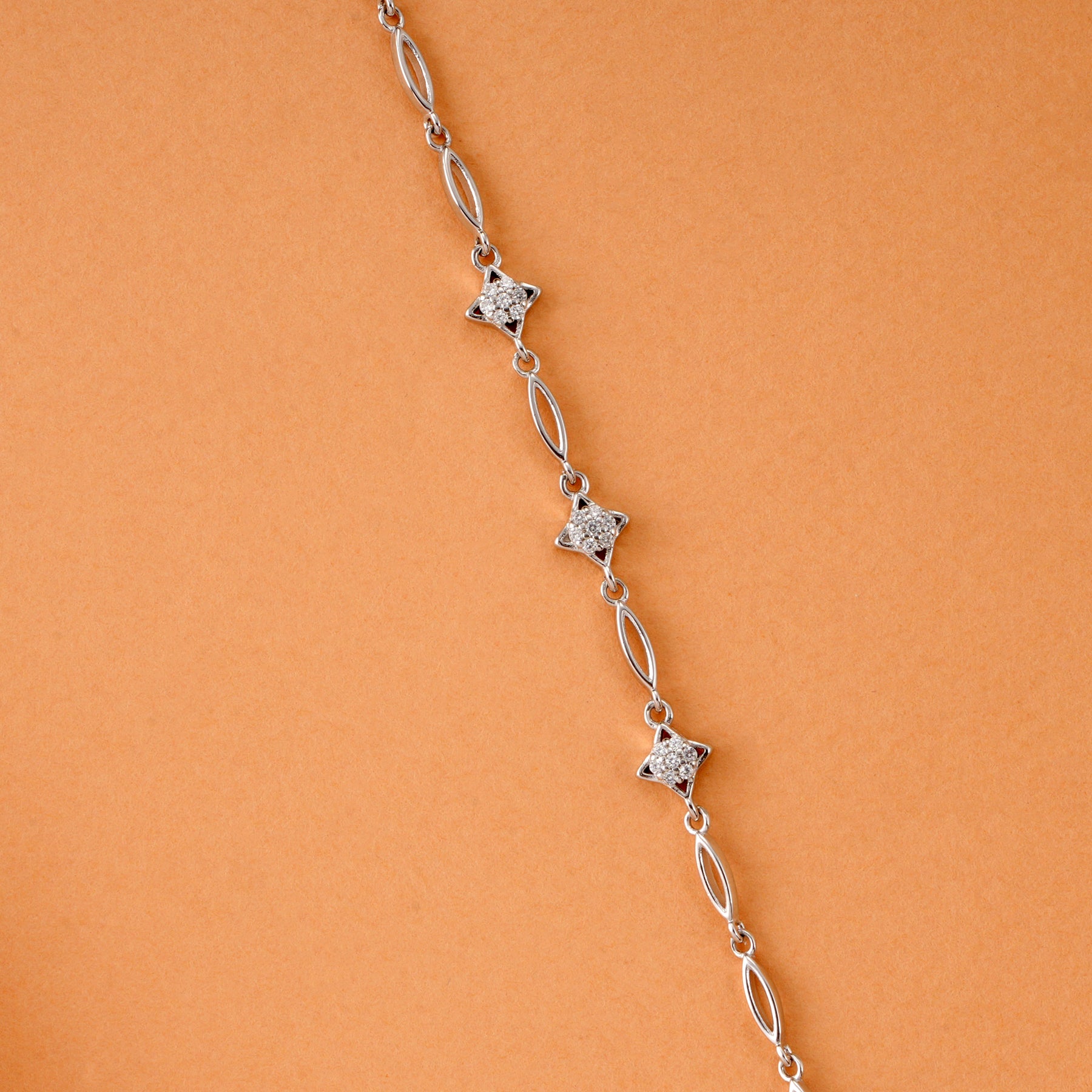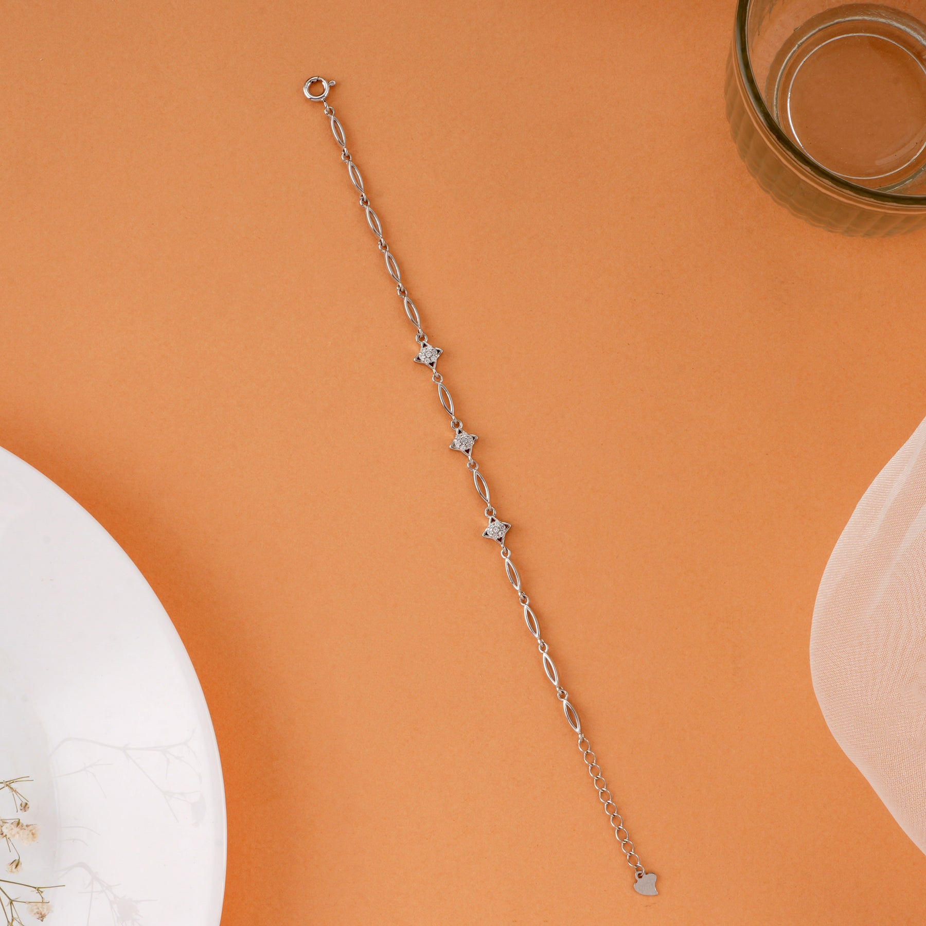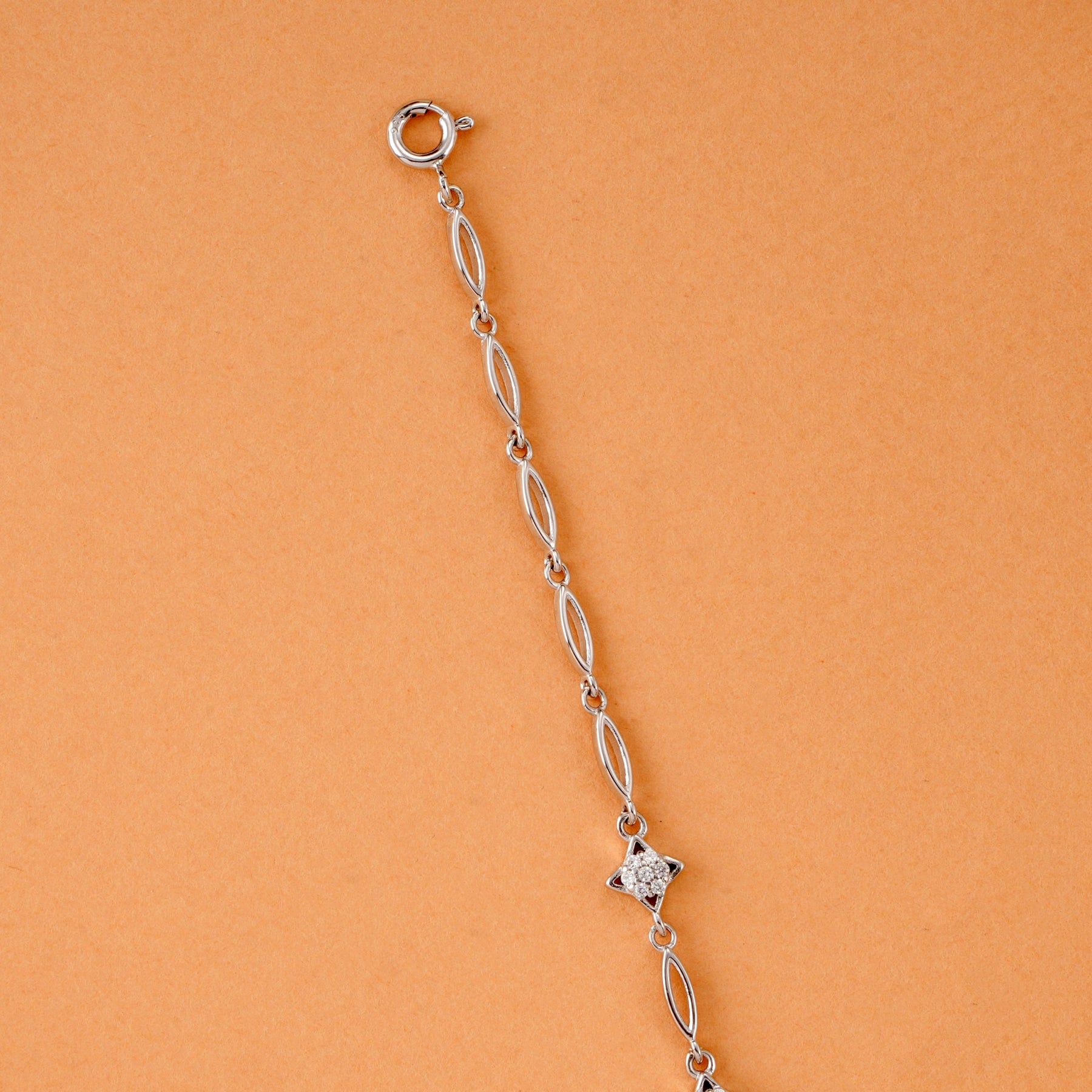 Made of 92.5 silver, this bracelet features tiny star motifs with stone accents that bring celestial sparkle and a radiant touch.