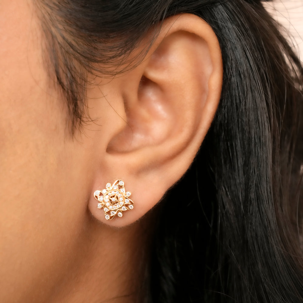 Petite Floral Rose Gold Diamond Earring