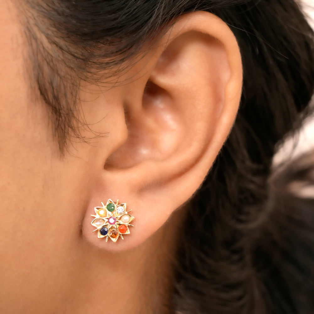 Navaratna Floral Diamond Stud