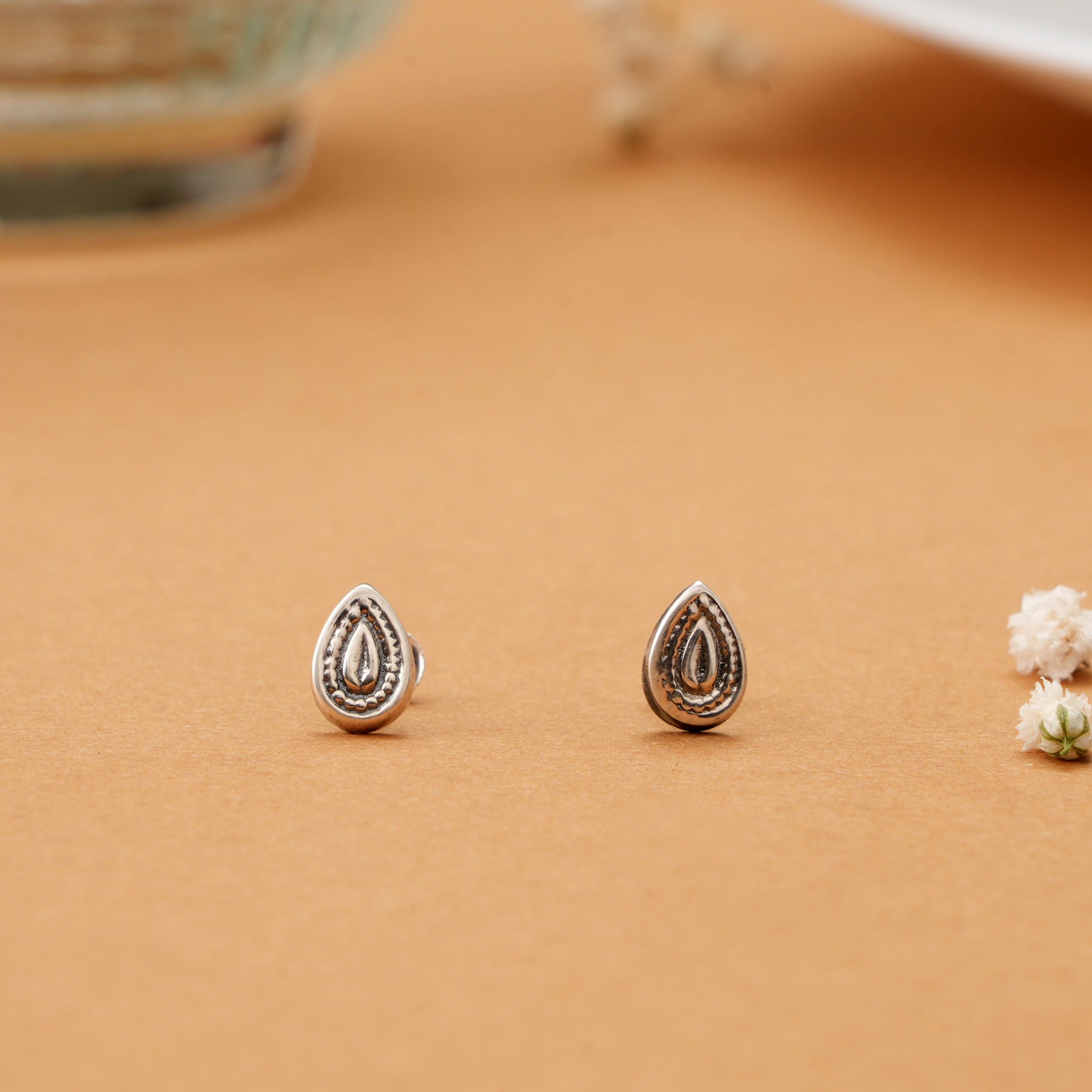 Crafted in 92.5 Sterling Silver, these antique leaf oval studs feature intricate design and vintage charm, ideal for ethnic or festive occasions.