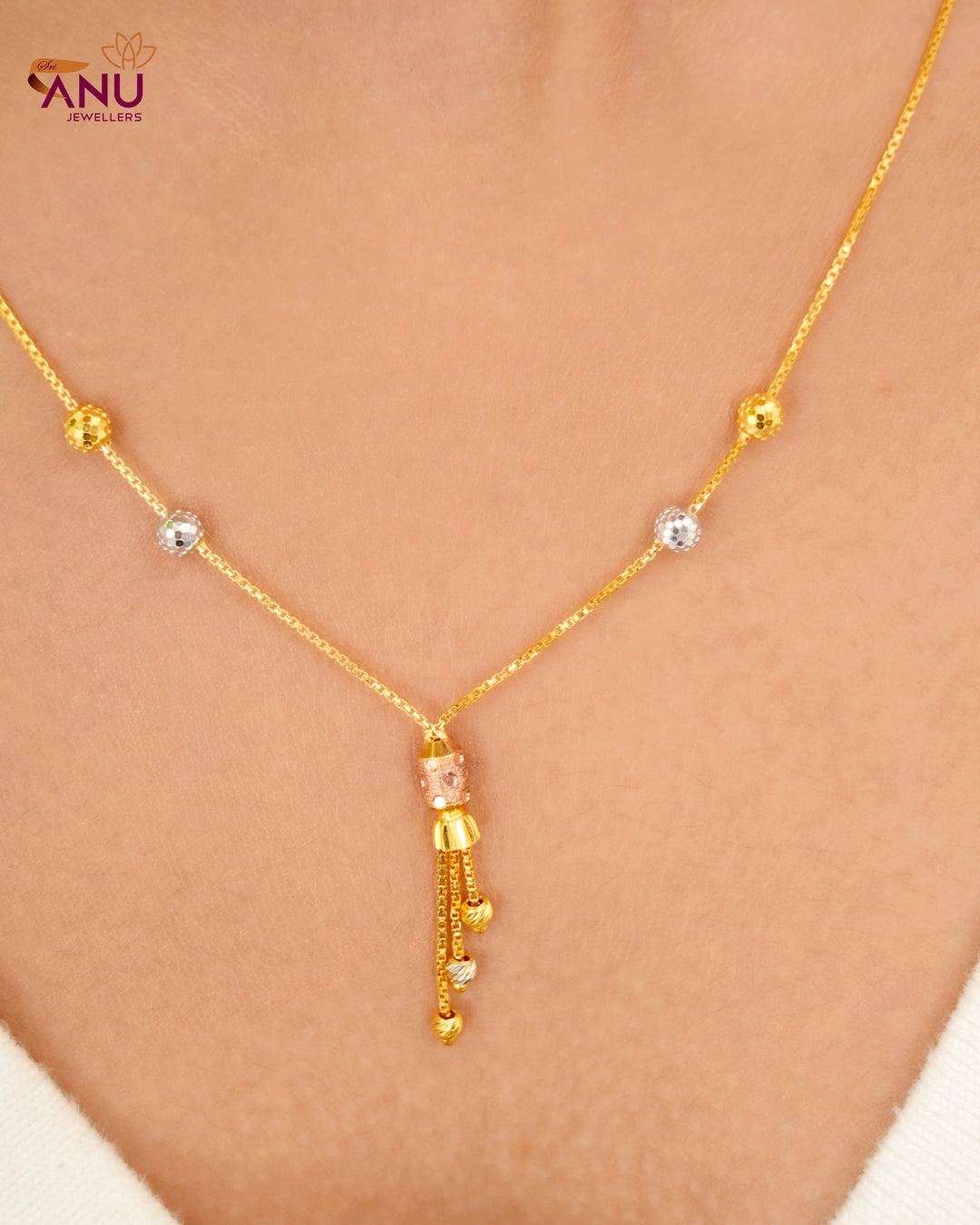 Stylish White Ball Pattern Gold Chain