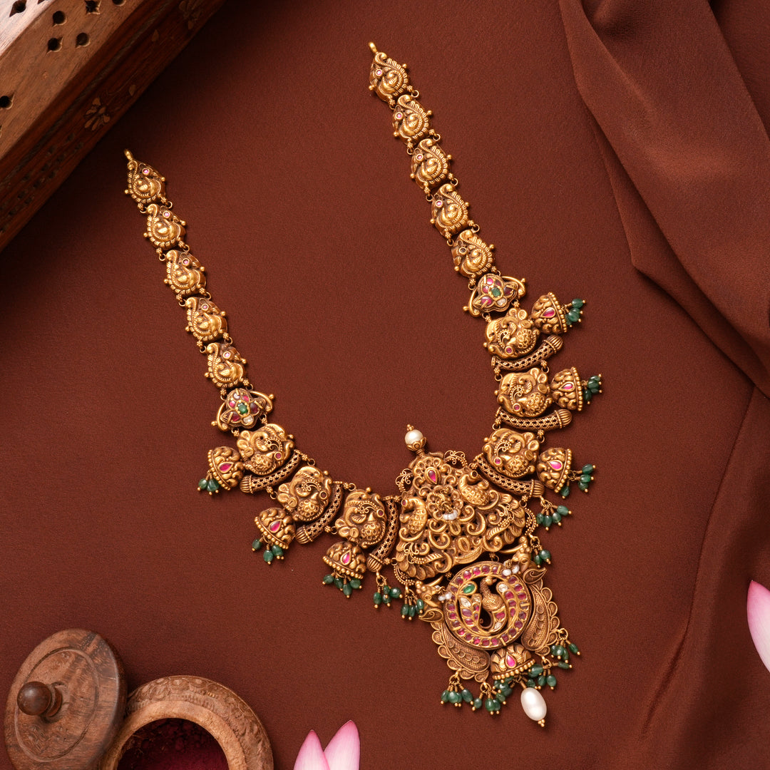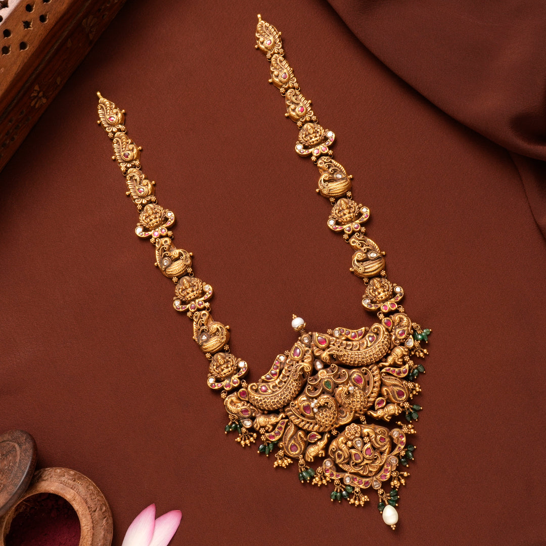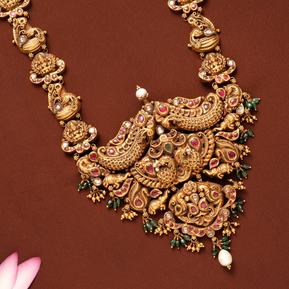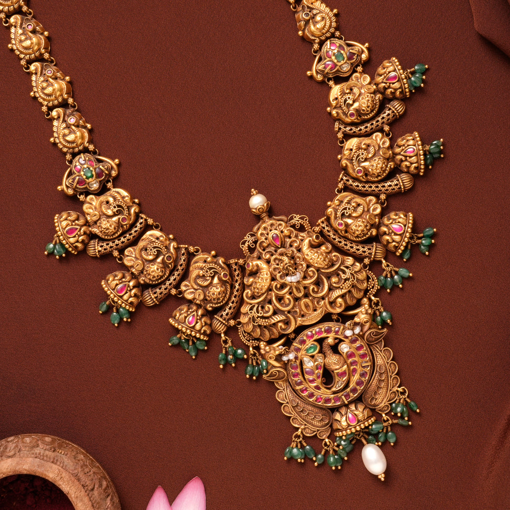 Antique Peacock Floral Ruby Gold Haram