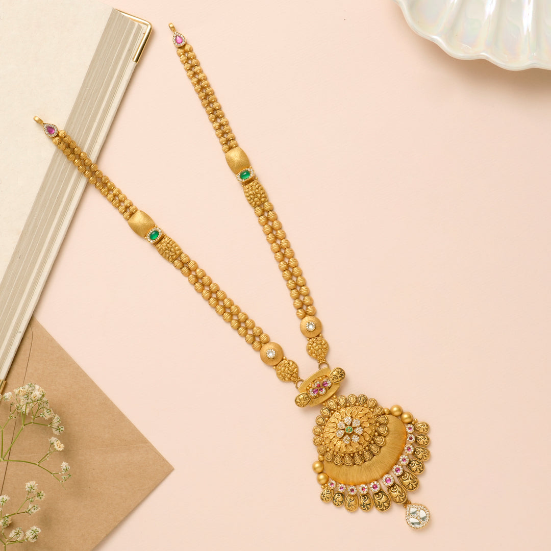 Floral Gold Haram with Peacock Pendant