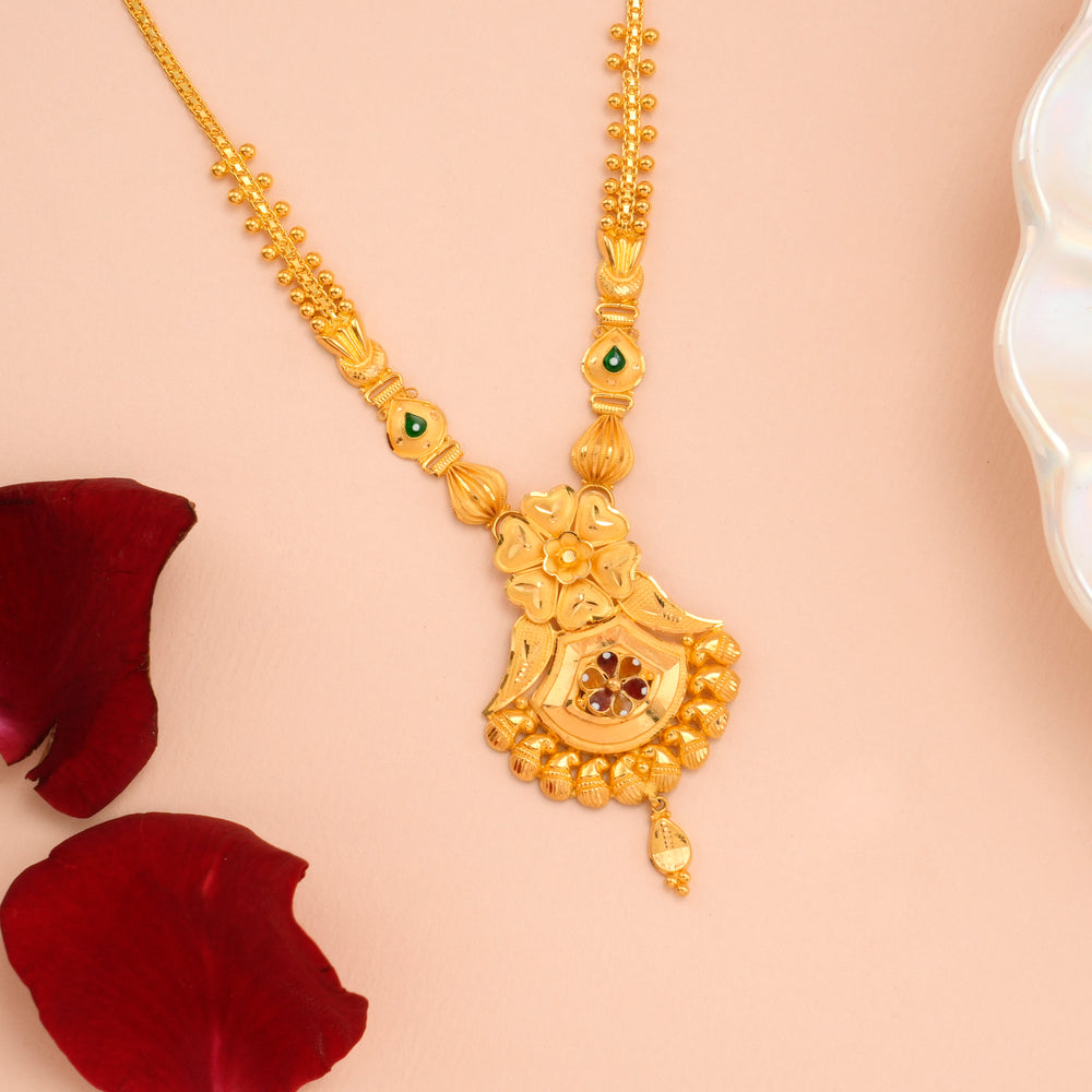 Nagas Ruby Bead Gold Lakshmi Necklace
