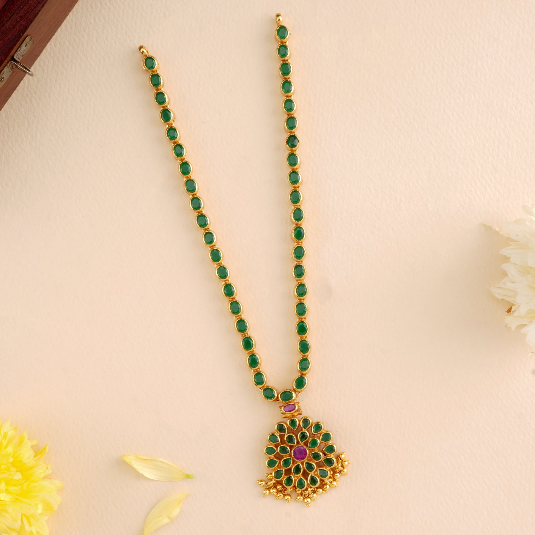 2 in 1 Ruby Emerald Blossom Petal Necklace