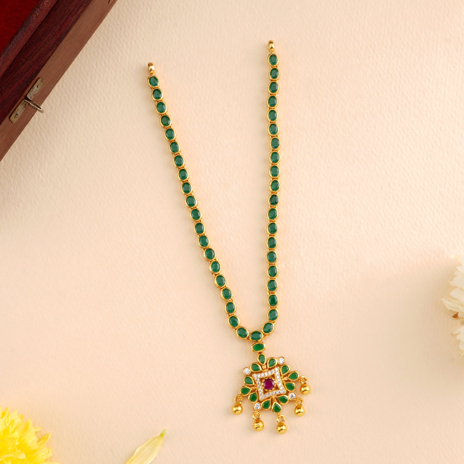 Crafted with 92.5 sterling silver and a gold-plated finish, this step-style necklace is enhanced with emerald blossom detailing for a unique layered appearance.