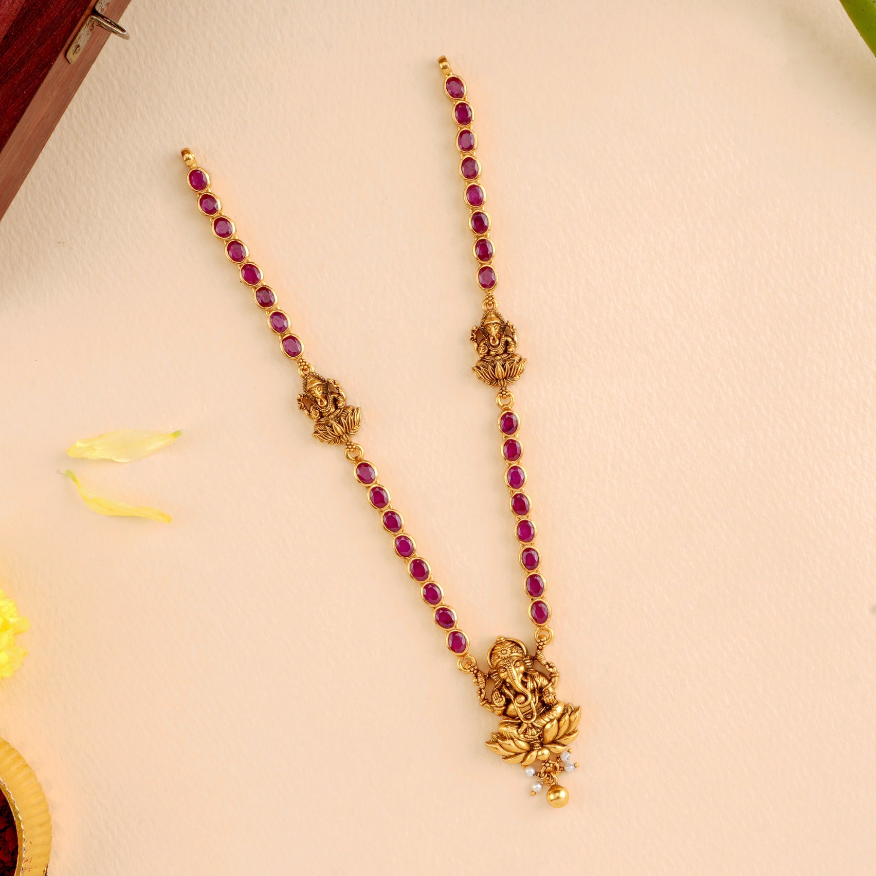 Vinayagar Pendant with Ruby Necklace
