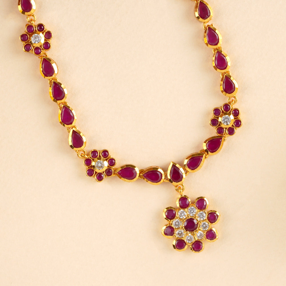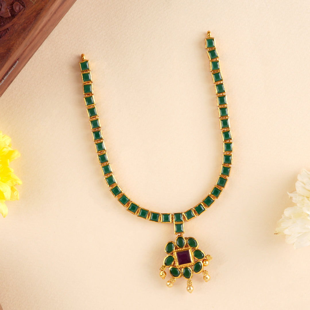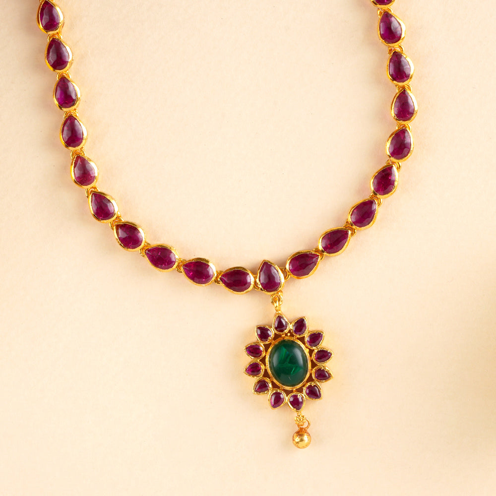 Ruby Emerald Nagas Work Kerala Style Necklace