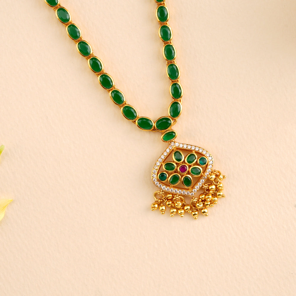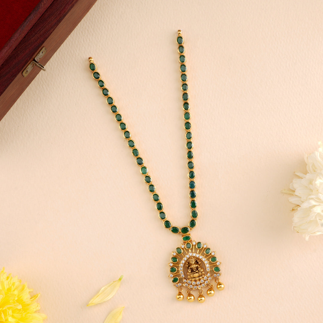 Antique Lakshmi with Emerald Oval Shape Necklace