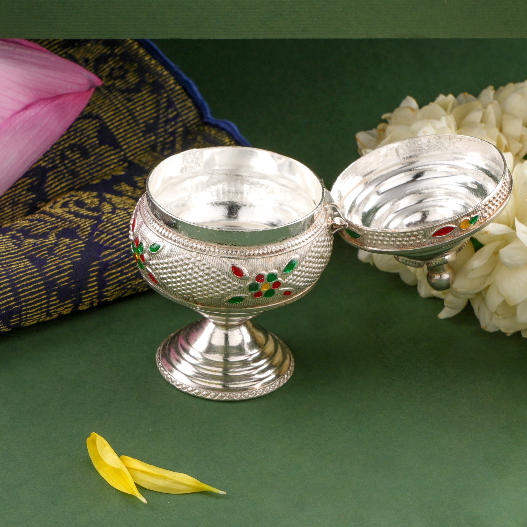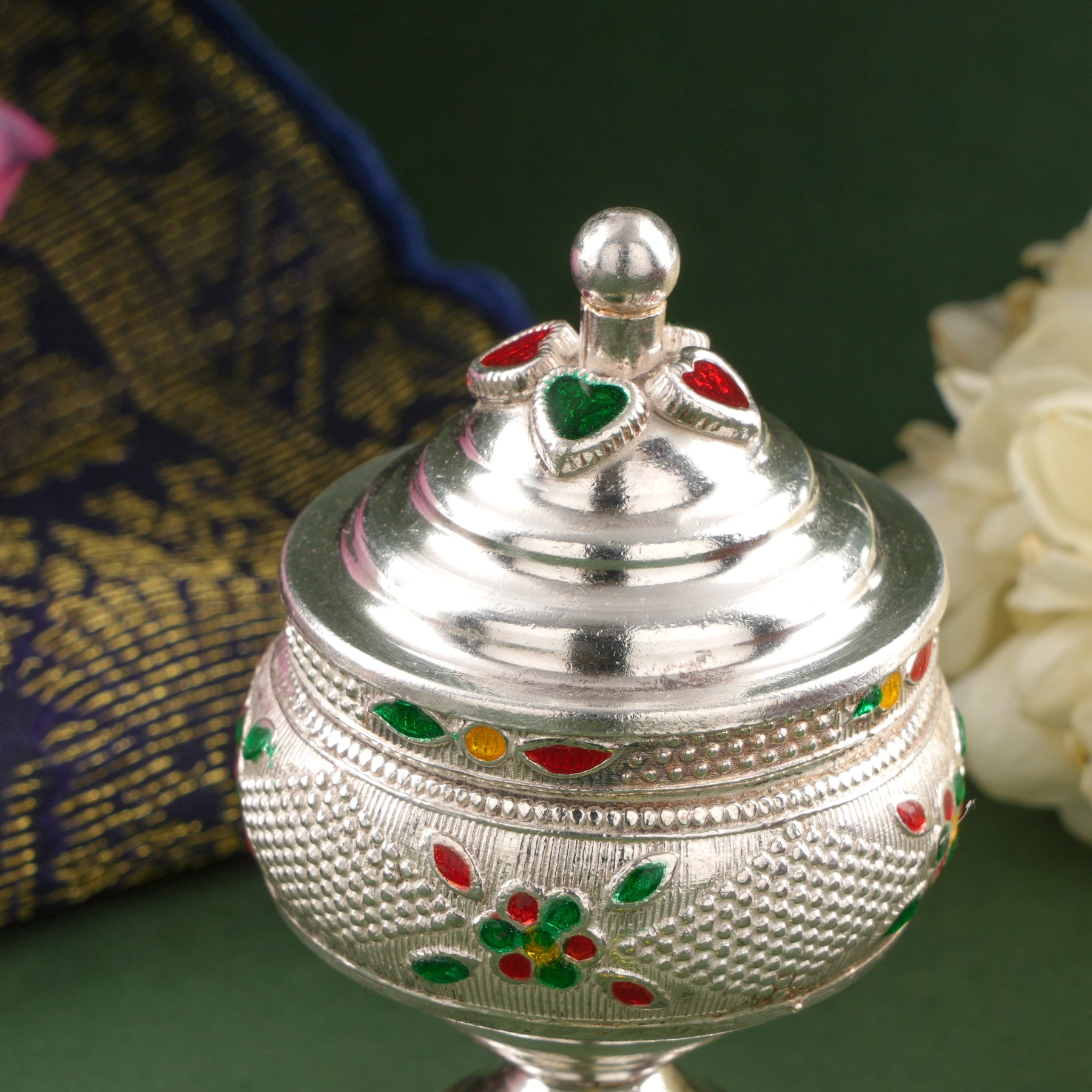 Crafted in 92.5 Sterling Silver, this Graceful Silver Kunghuma Chimil is ideal for holding Kumkum in daily pooja.