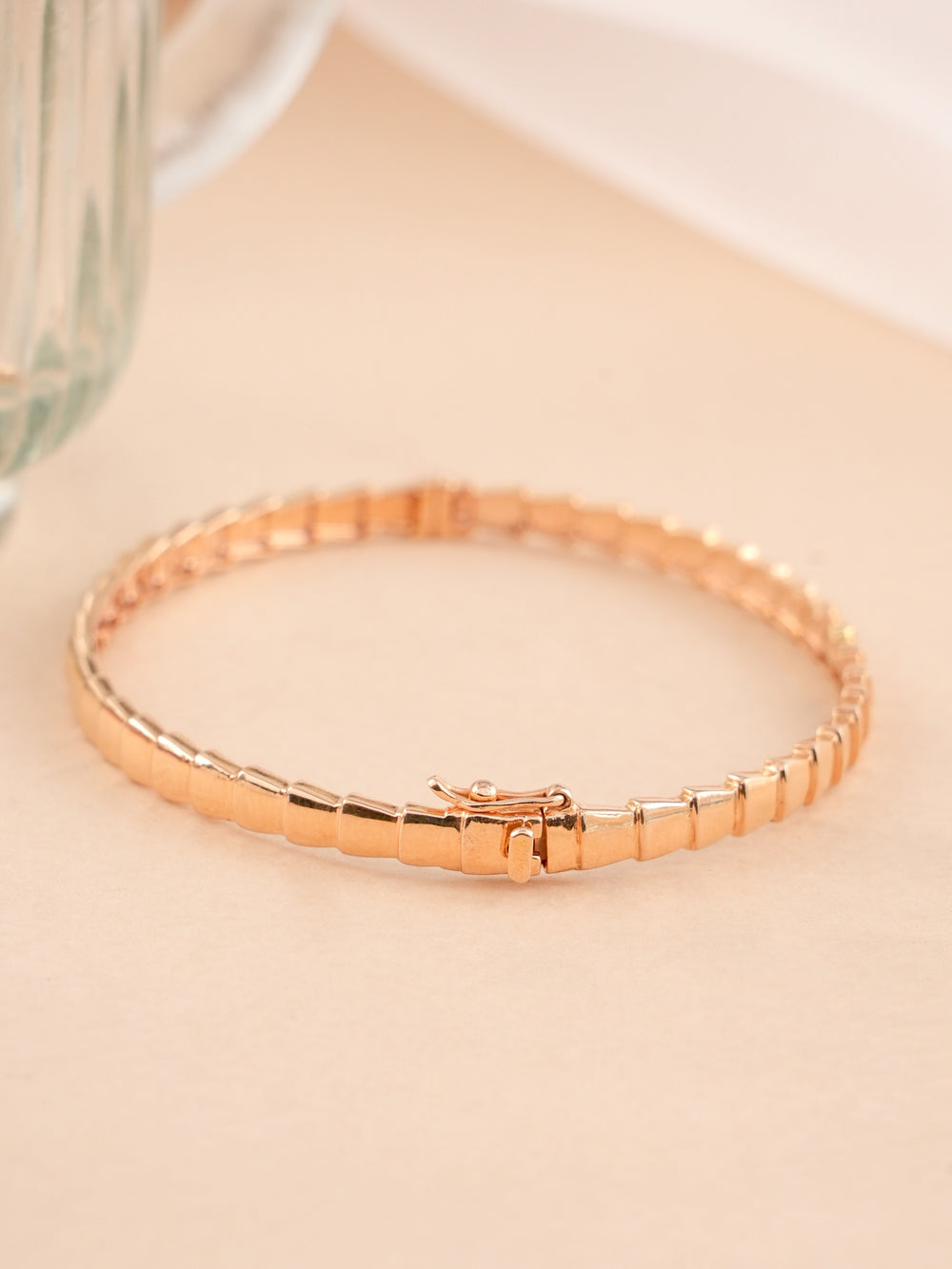 Crafted in 18K gold with a rose gold finish, this flexible viper kada wraps your wrist with elegance and power.