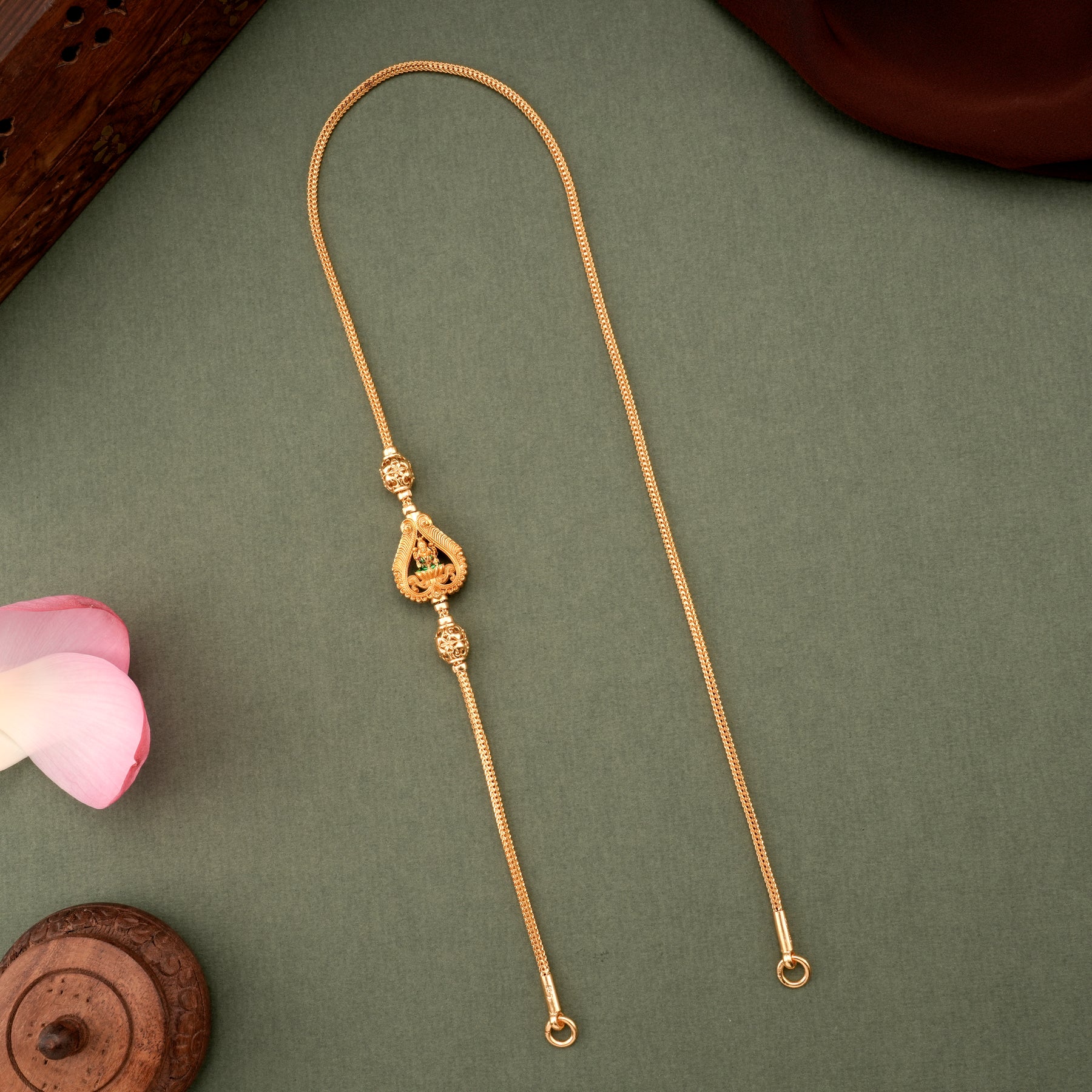 Classic Leaf Shape Golden Lakshmi Mugappu Chain