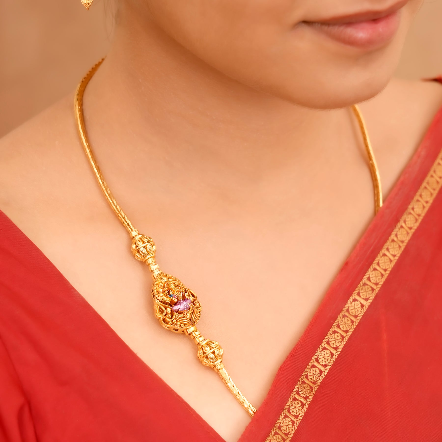 • Looks beautiful with temple jewellery sets.