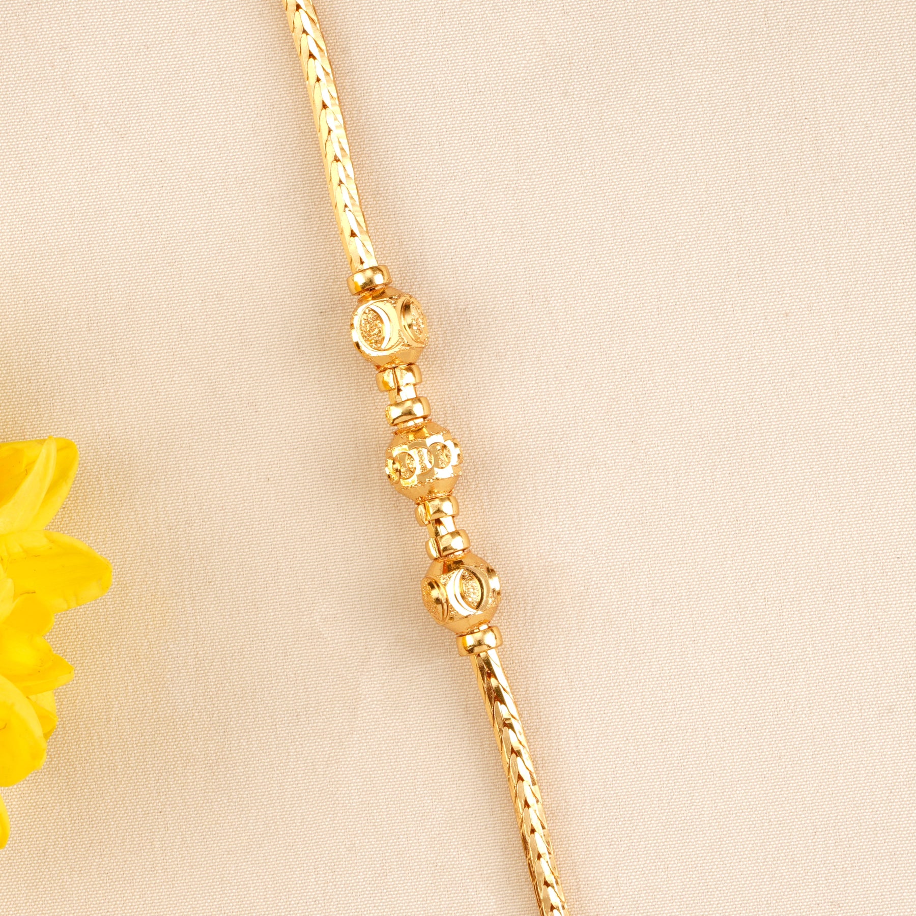 Made of 92.5 silver with gold plating, this chain features traditional ball work for a vintage temple jewellery look. Perfect for festive and religious wear.
