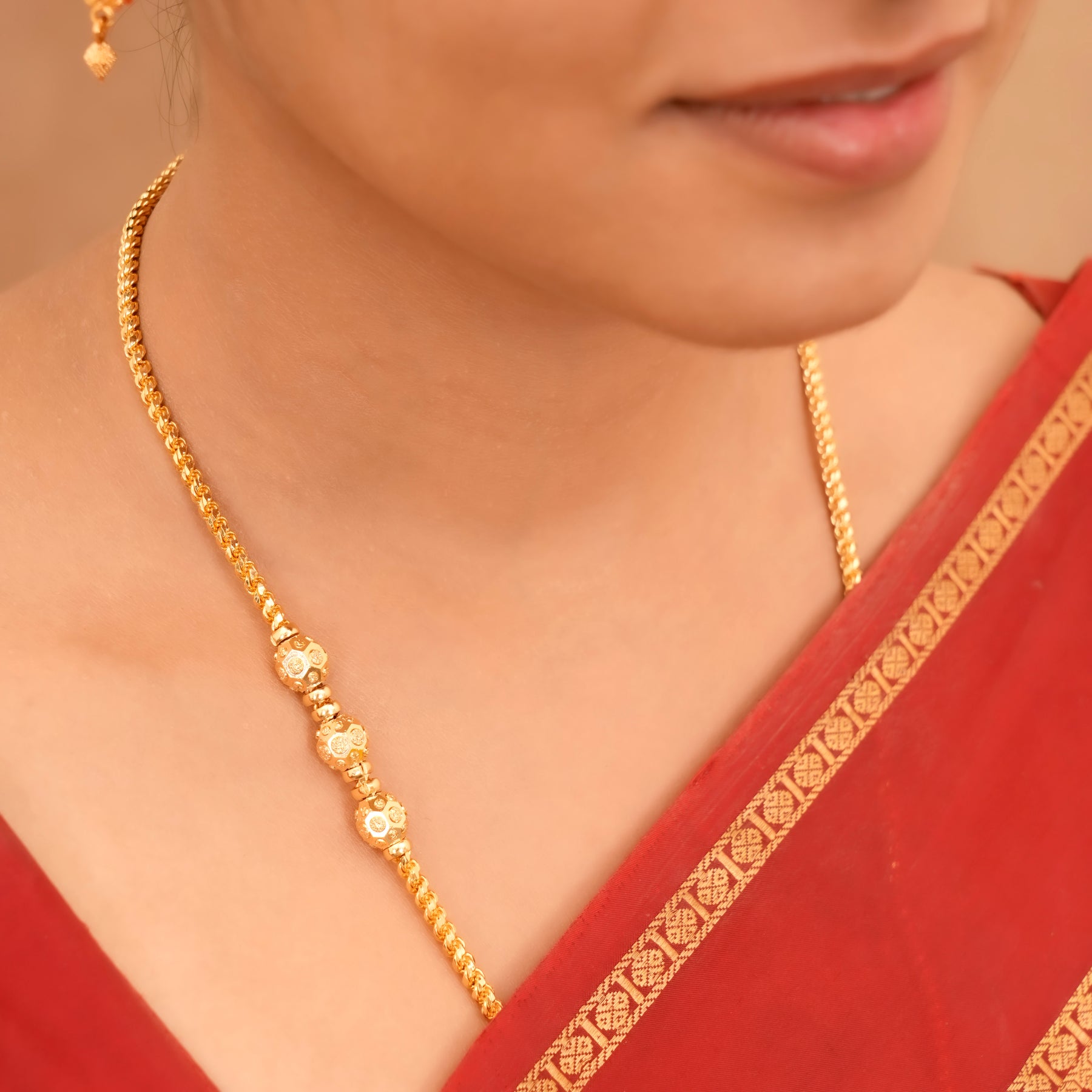 Crafted from 92.5 sterling silver with gold plating, this Mugappu chain features traditional golden bead detailing inspired by classic South Indian jewellery craftsmanship.