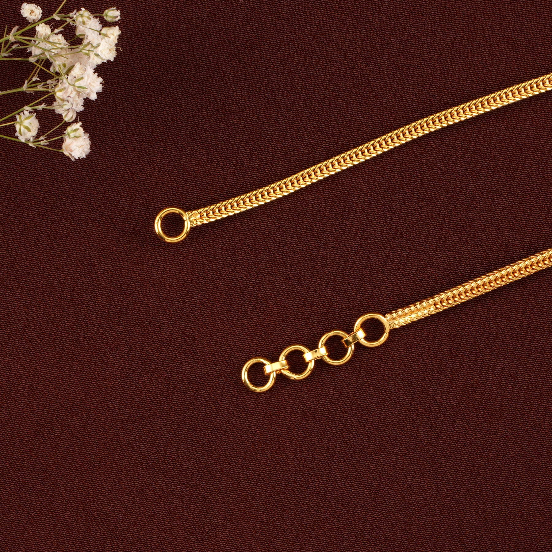 Crafted in 92.5 Sterling Silver with a gold-plated finish, this adjustable twist back chain blends modern design with everyday practicality and shine.