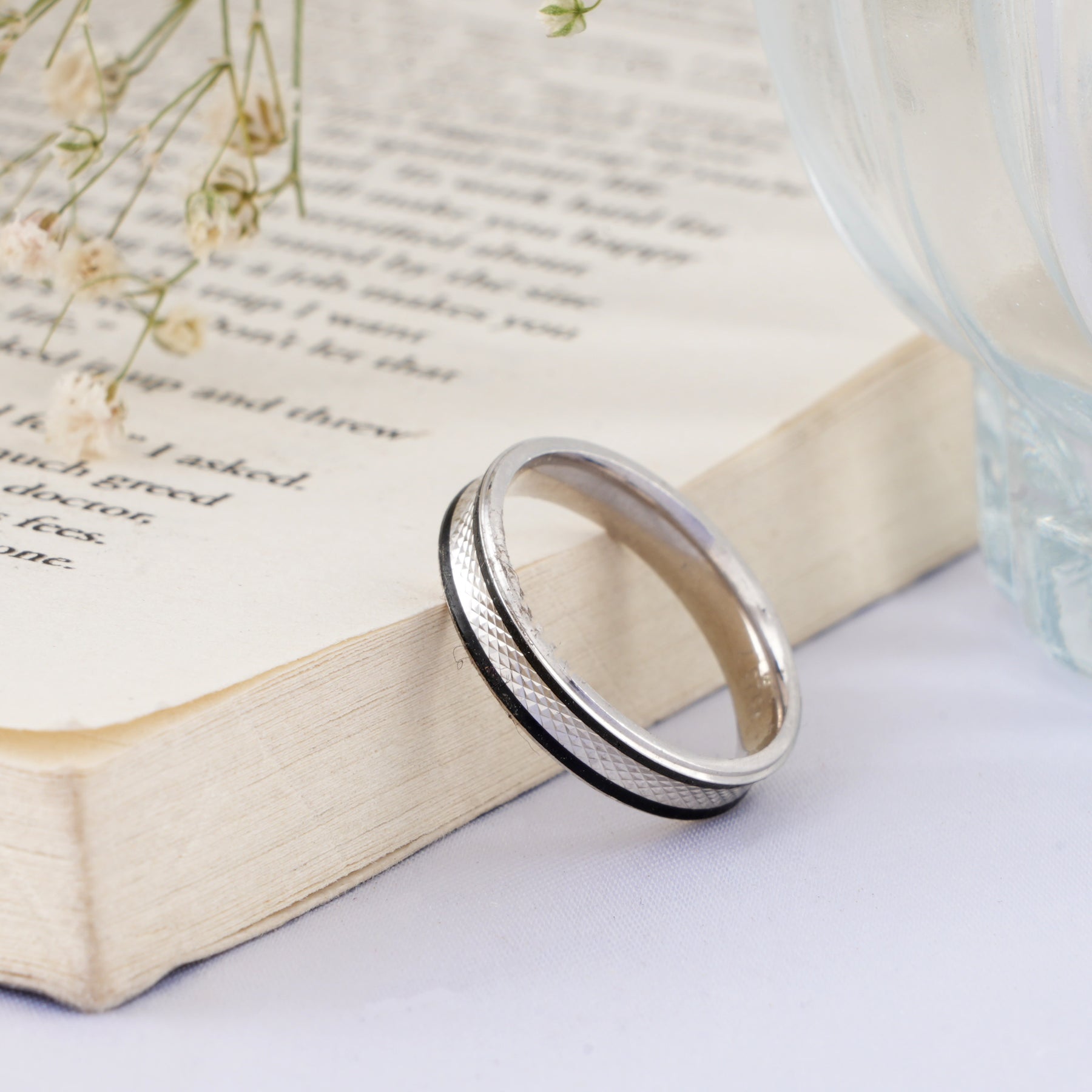 Made from 92.5 silver, this broad band ring has a bold black enamel finish for a masculine touch.