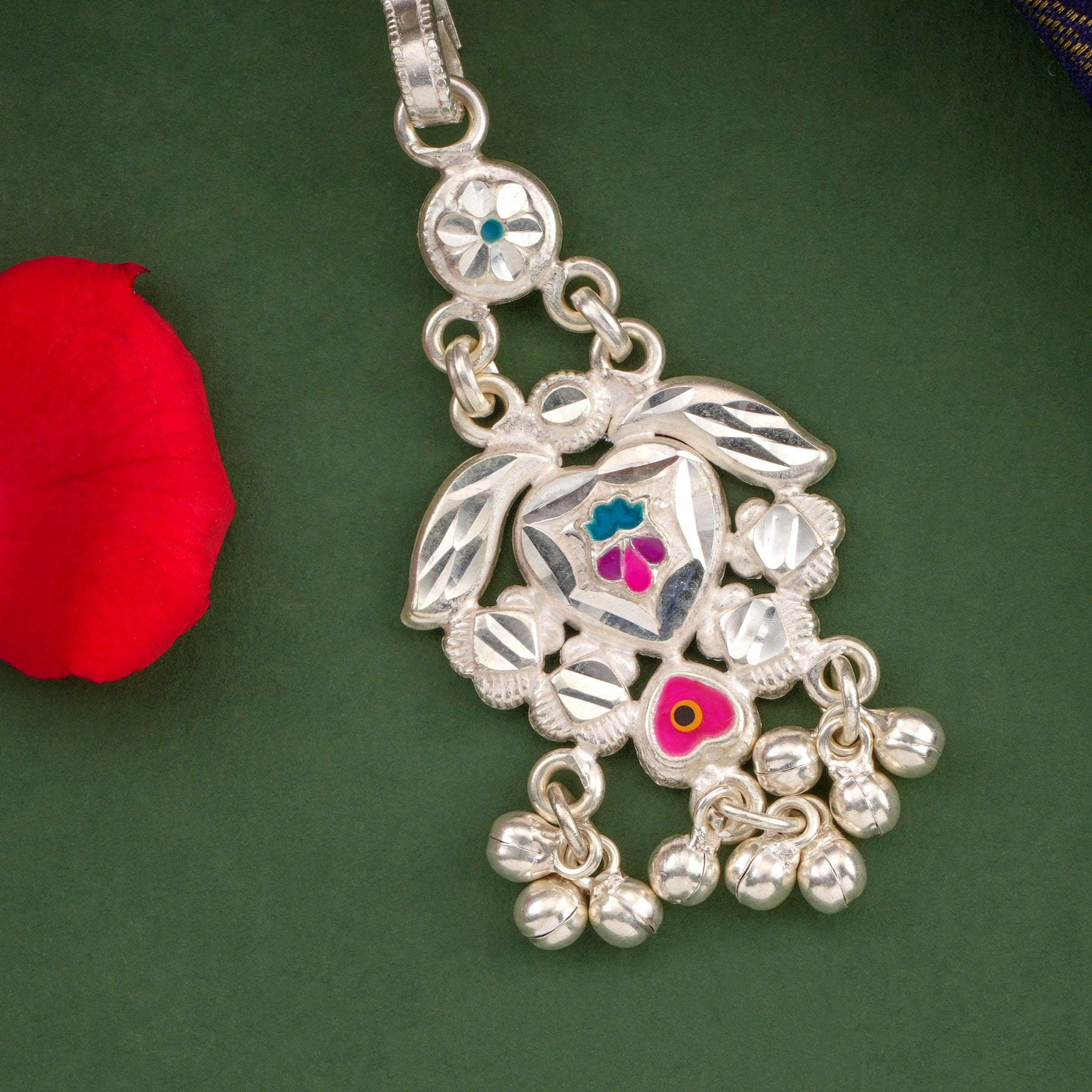 Crafted in standard silver, this radiant drop savi koththu keychain adds a touch of sparkle and elegance to your saree styling.