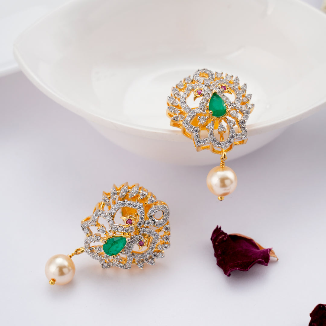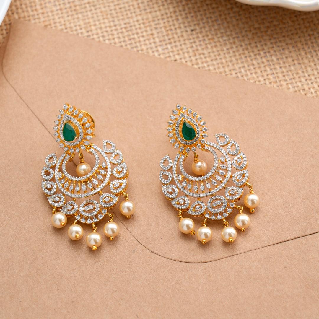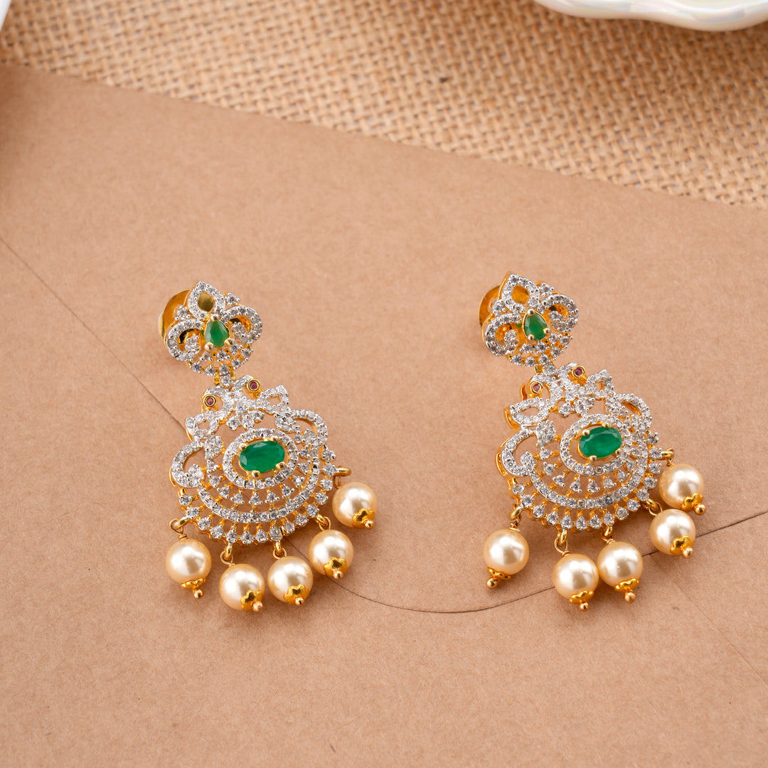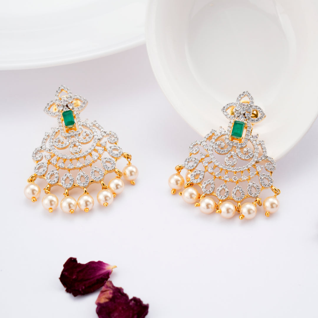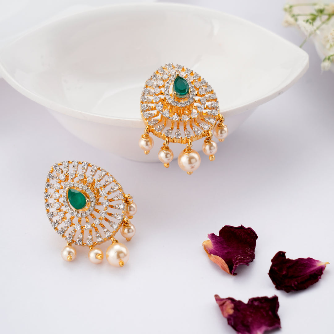Golden Swarovski Emerald & Pearl Drops Earring