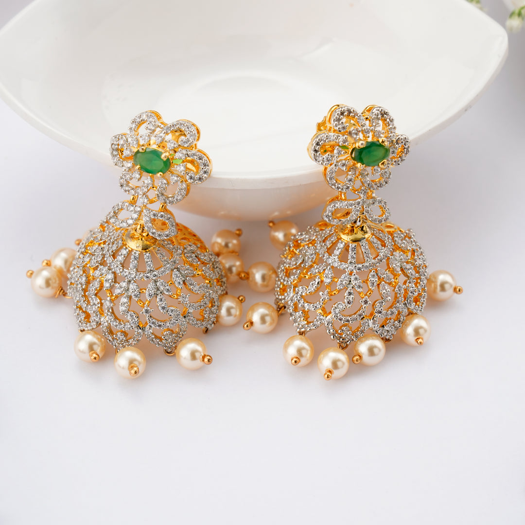 Radiant Emerald & Pearl Drops Swarovski Jhumkas