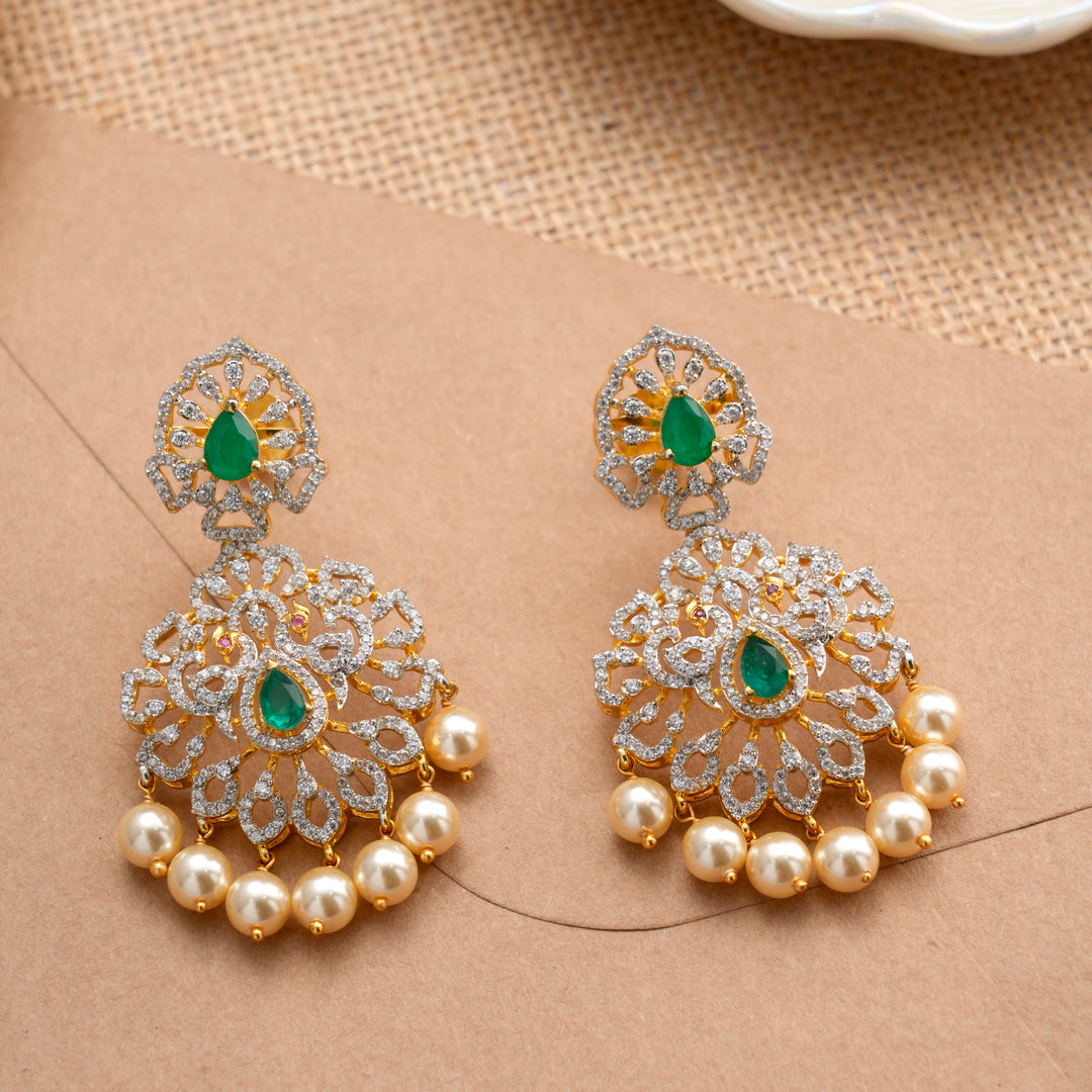 Leaf Emerald Swarovski Pearl Drops Jhumkas