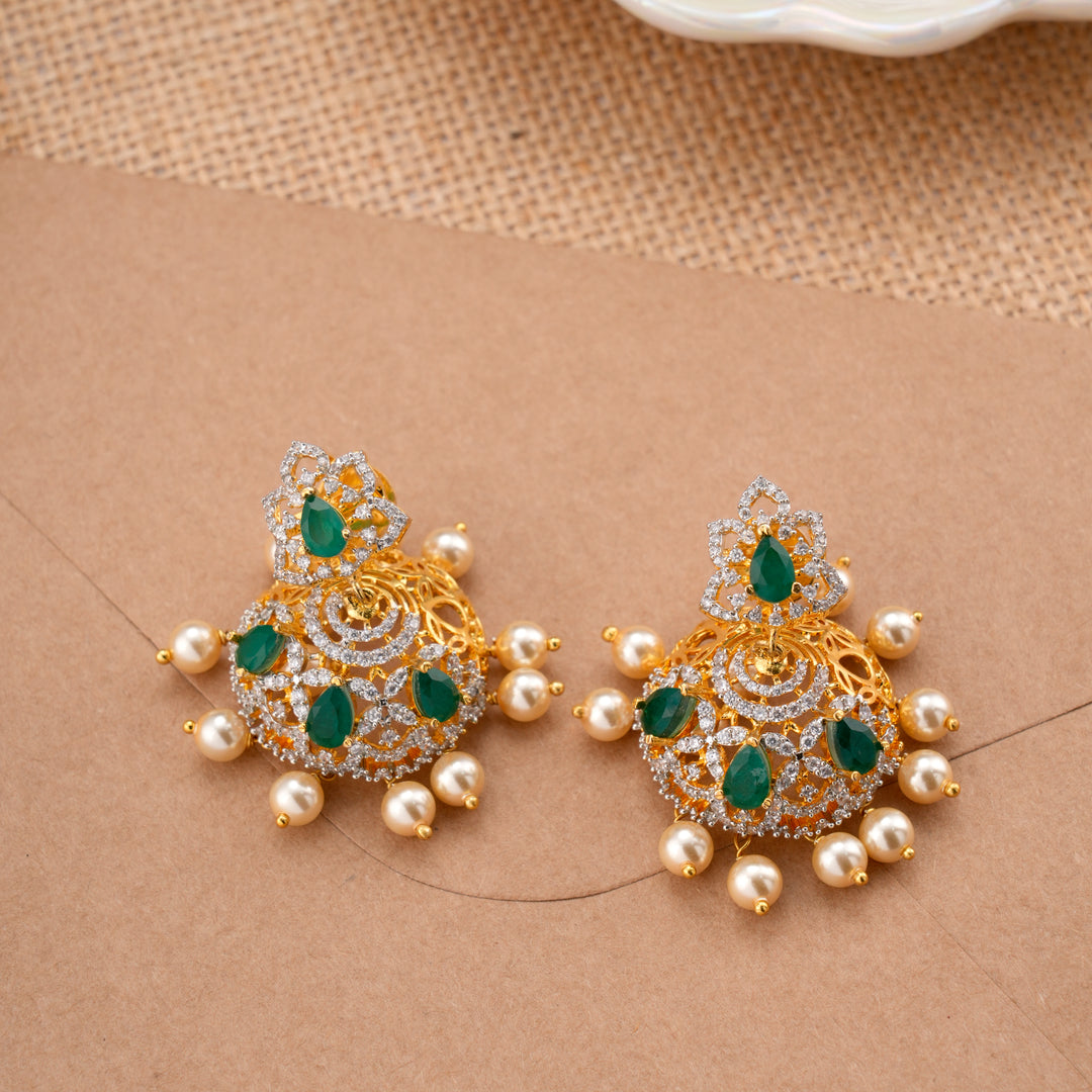 Elegant Emerald Pearl Drops Swarovski Jhumkas