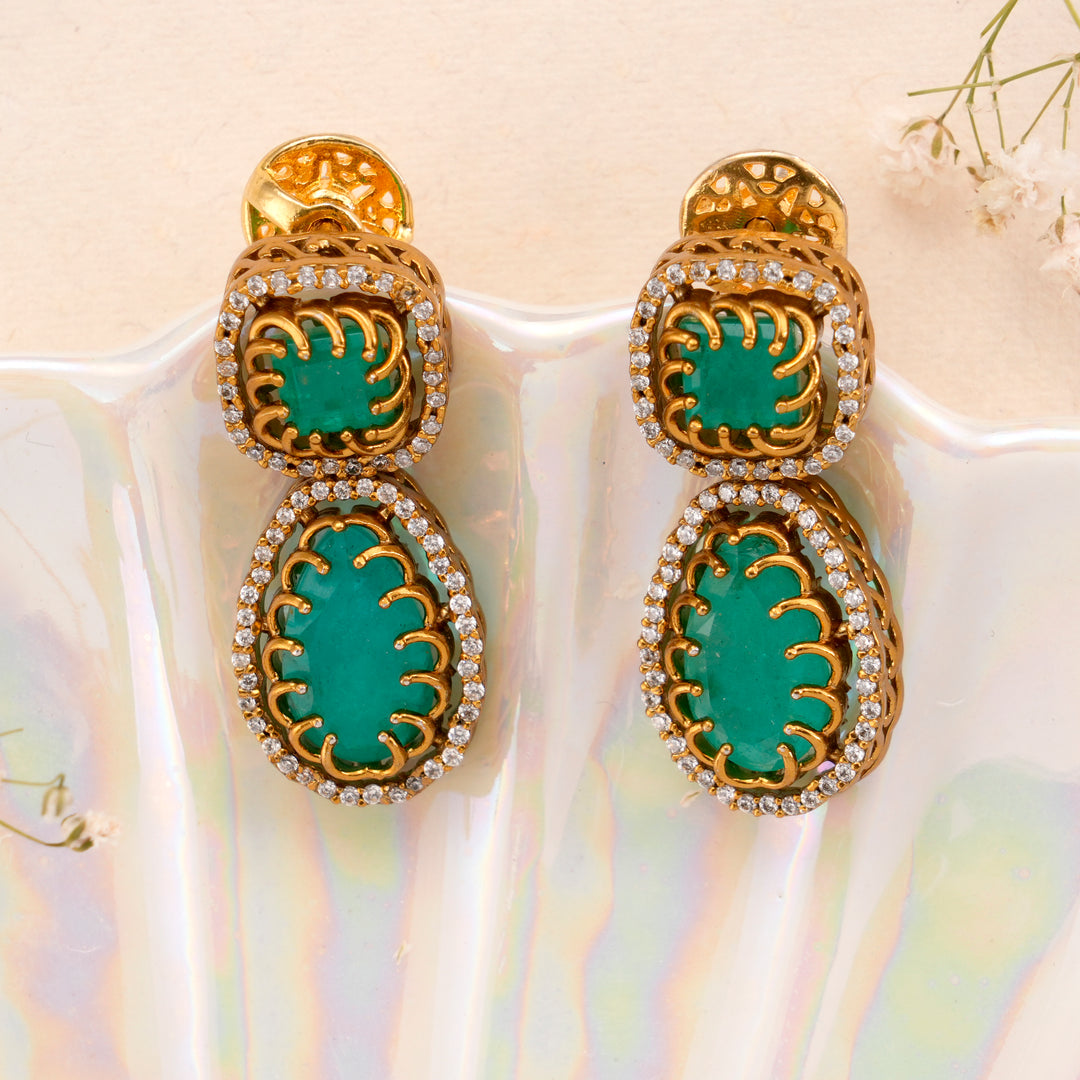 Elegant Emerald with Swarovski Golden Earring