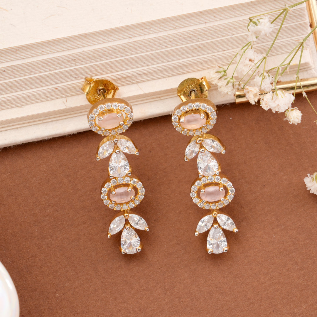 Charming White Stone Golden Drops Earrings