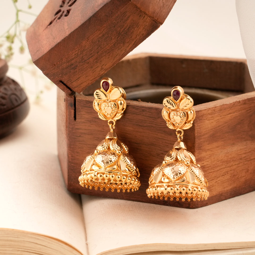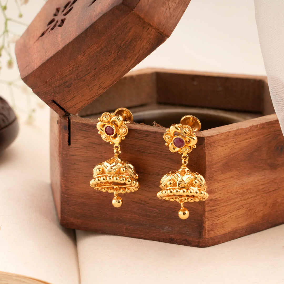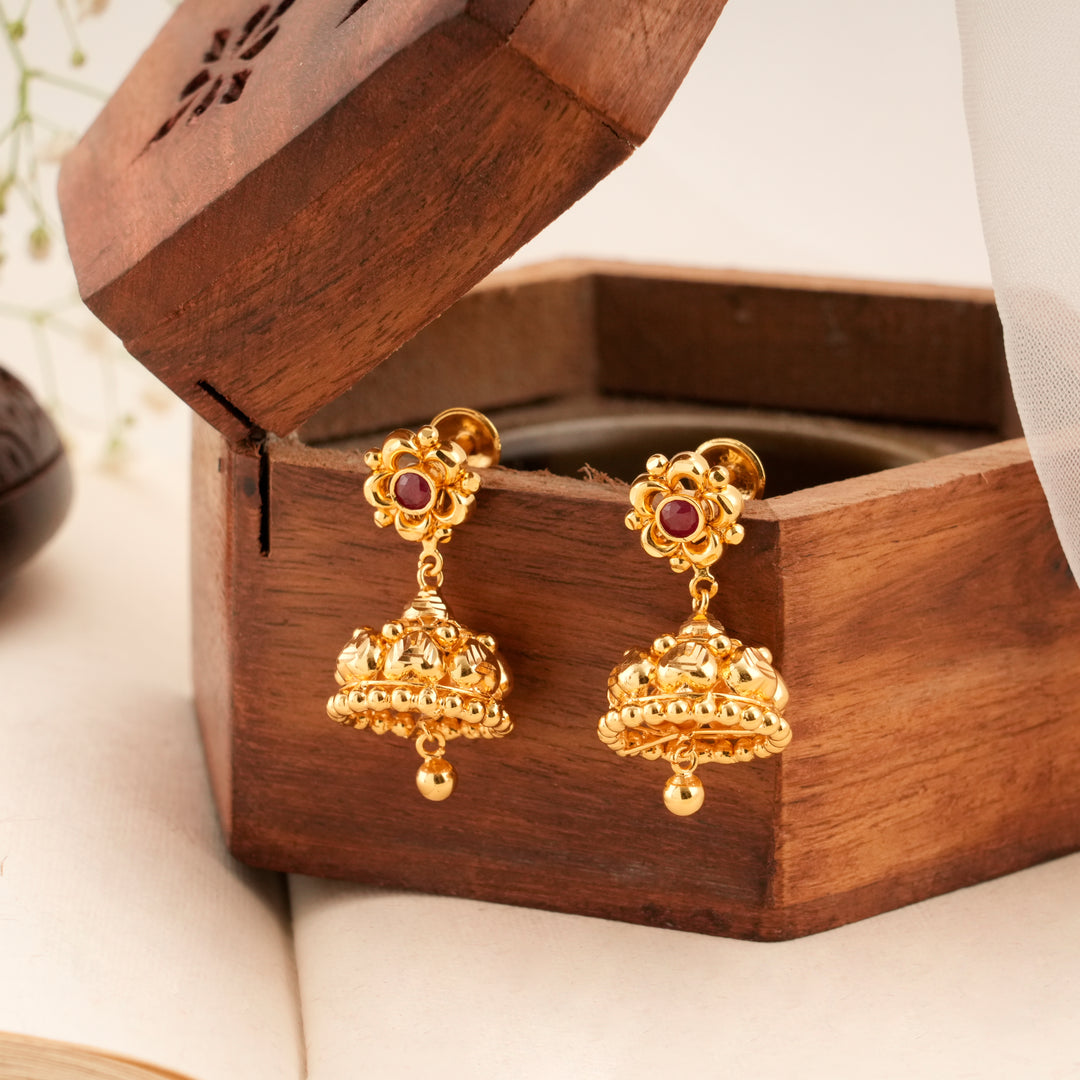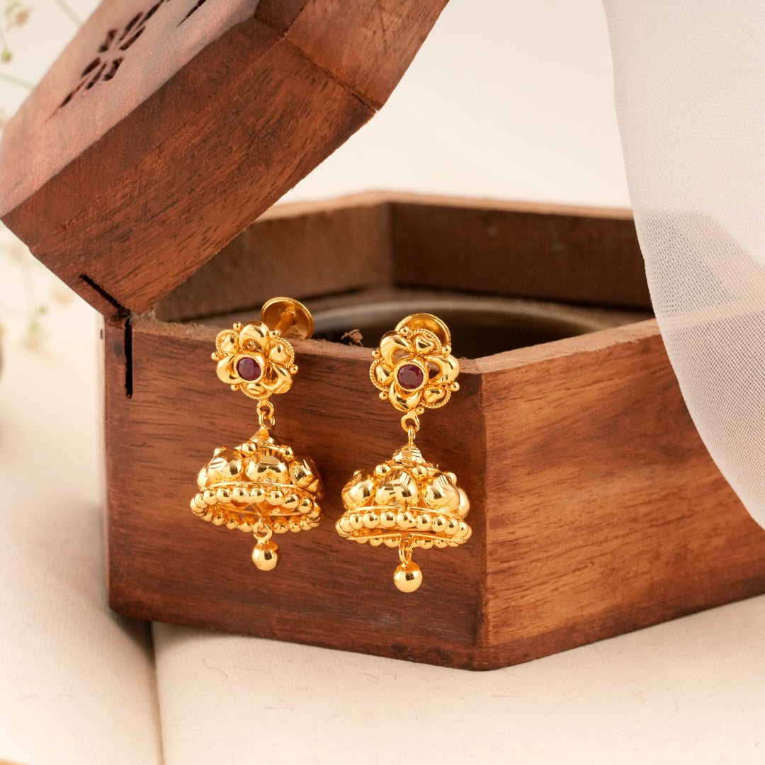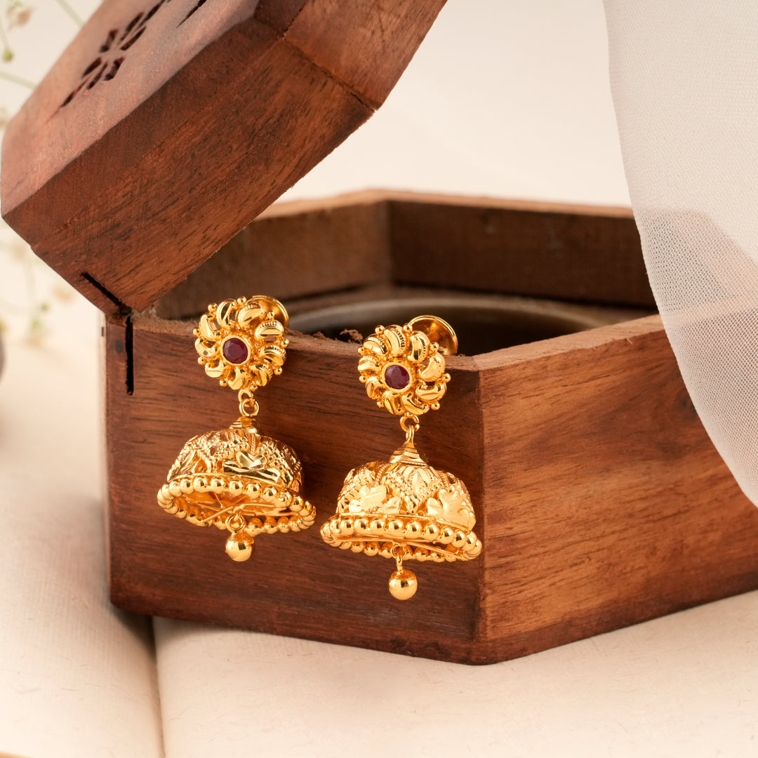Bloom Pattern Golden Ruby Jhumkas