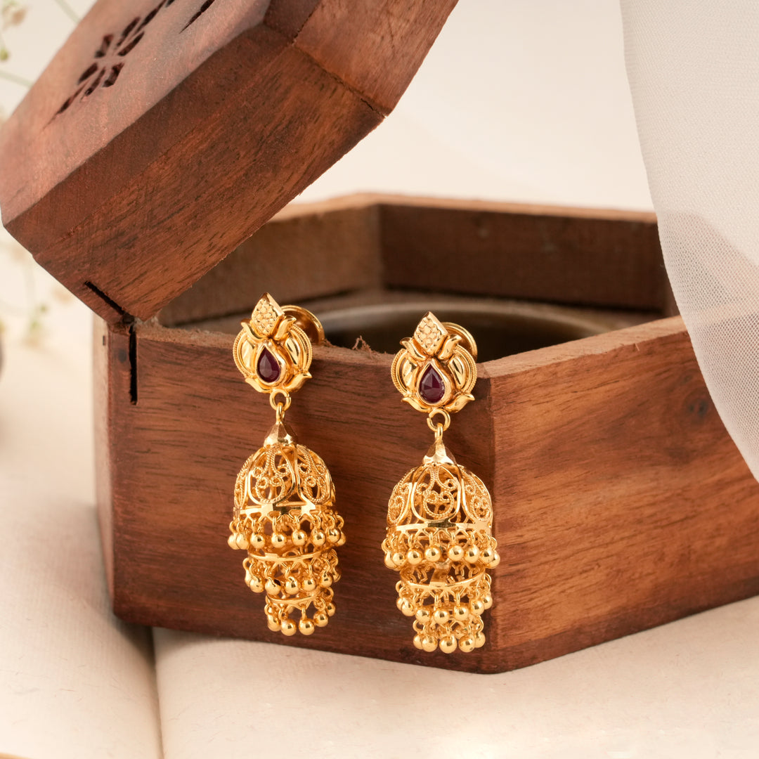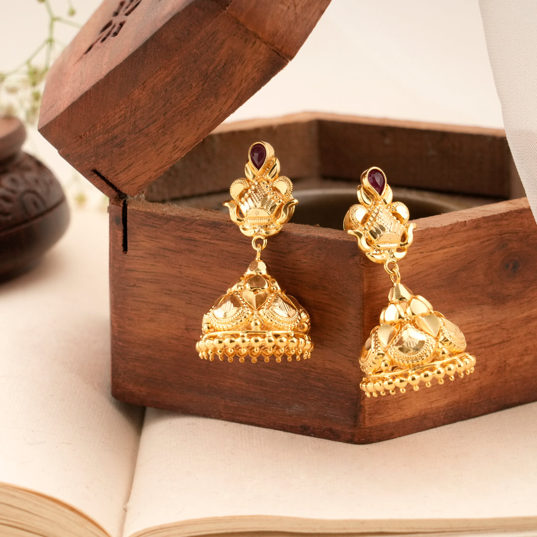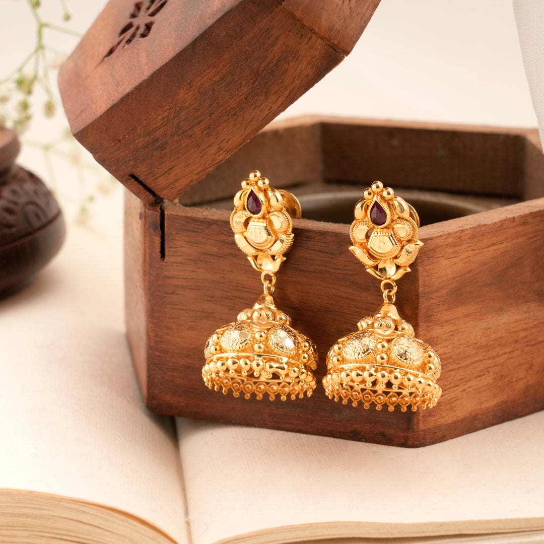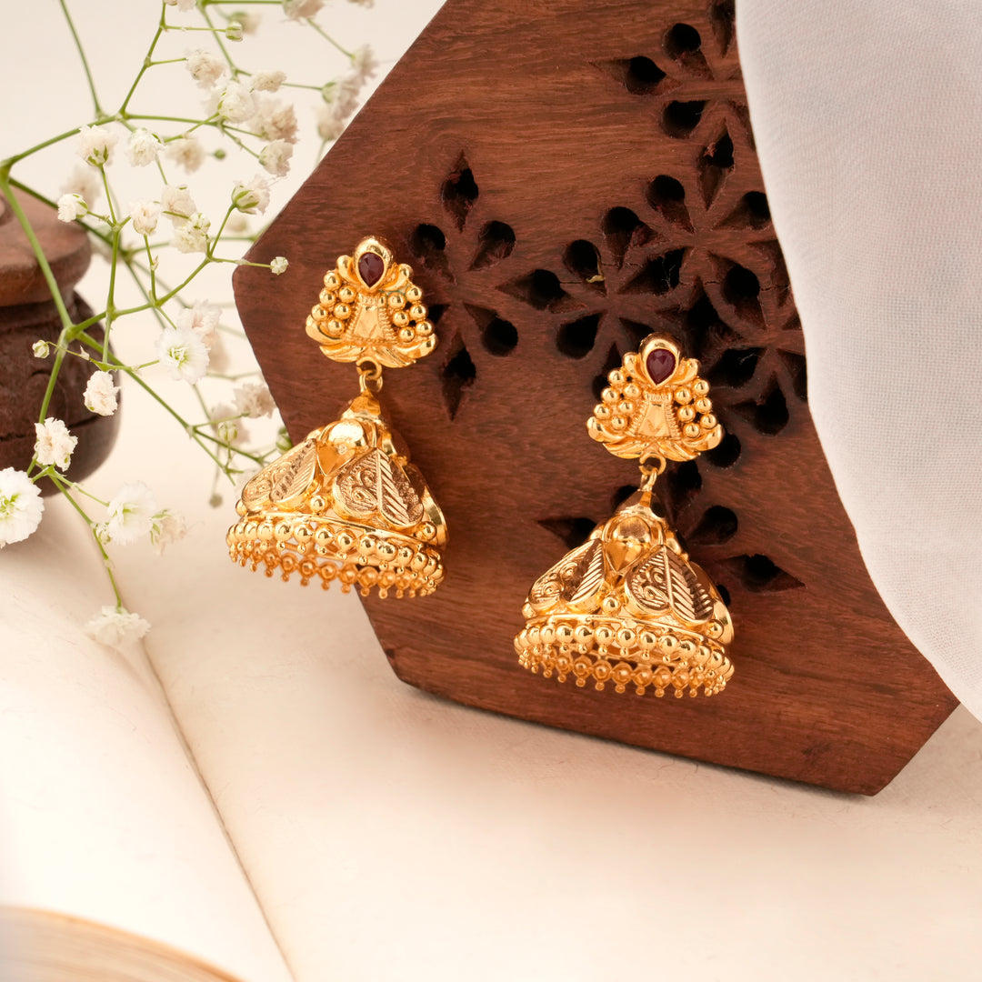 Classic Golden Ruby Design Jhumkas