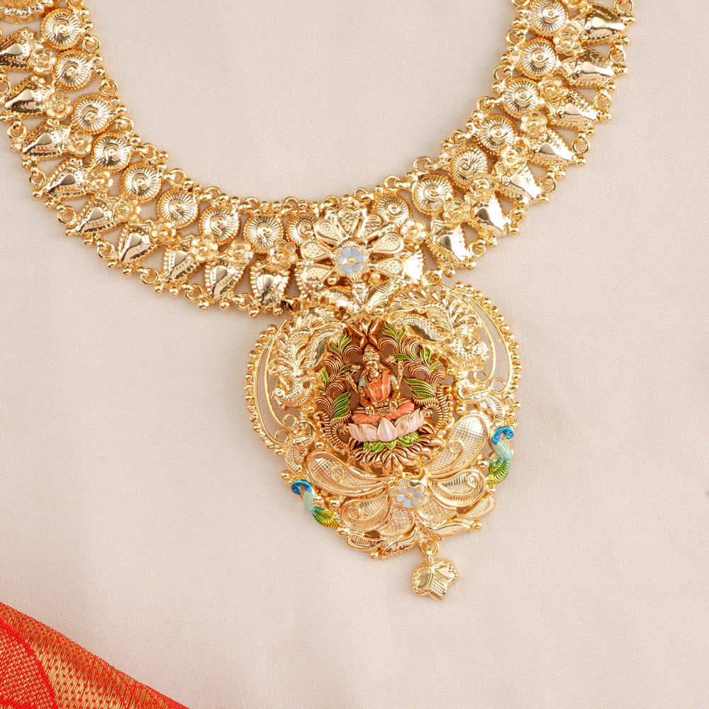 Traditional Gold-Plated Lakshmi Pendant Necklace