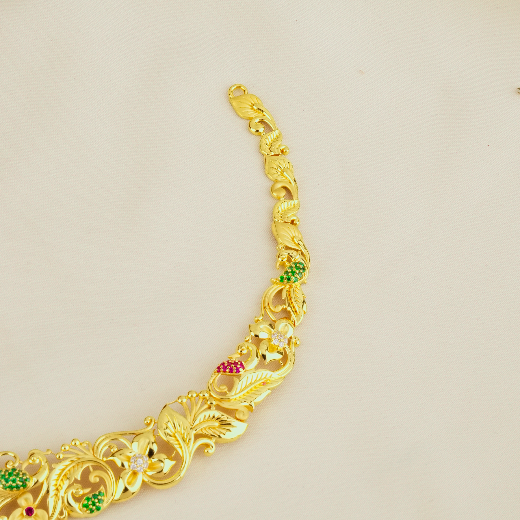 Elegant and radiant, this 22k gold Blossom Centerpiece Necklace features a stunning floral-inspired centerpiece, designed for women who love timeless sophistication.
