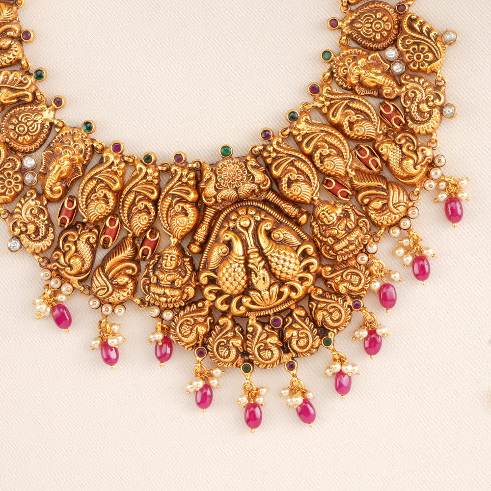 Peacock Nagas Gold Plated Ruby Drops Necklace