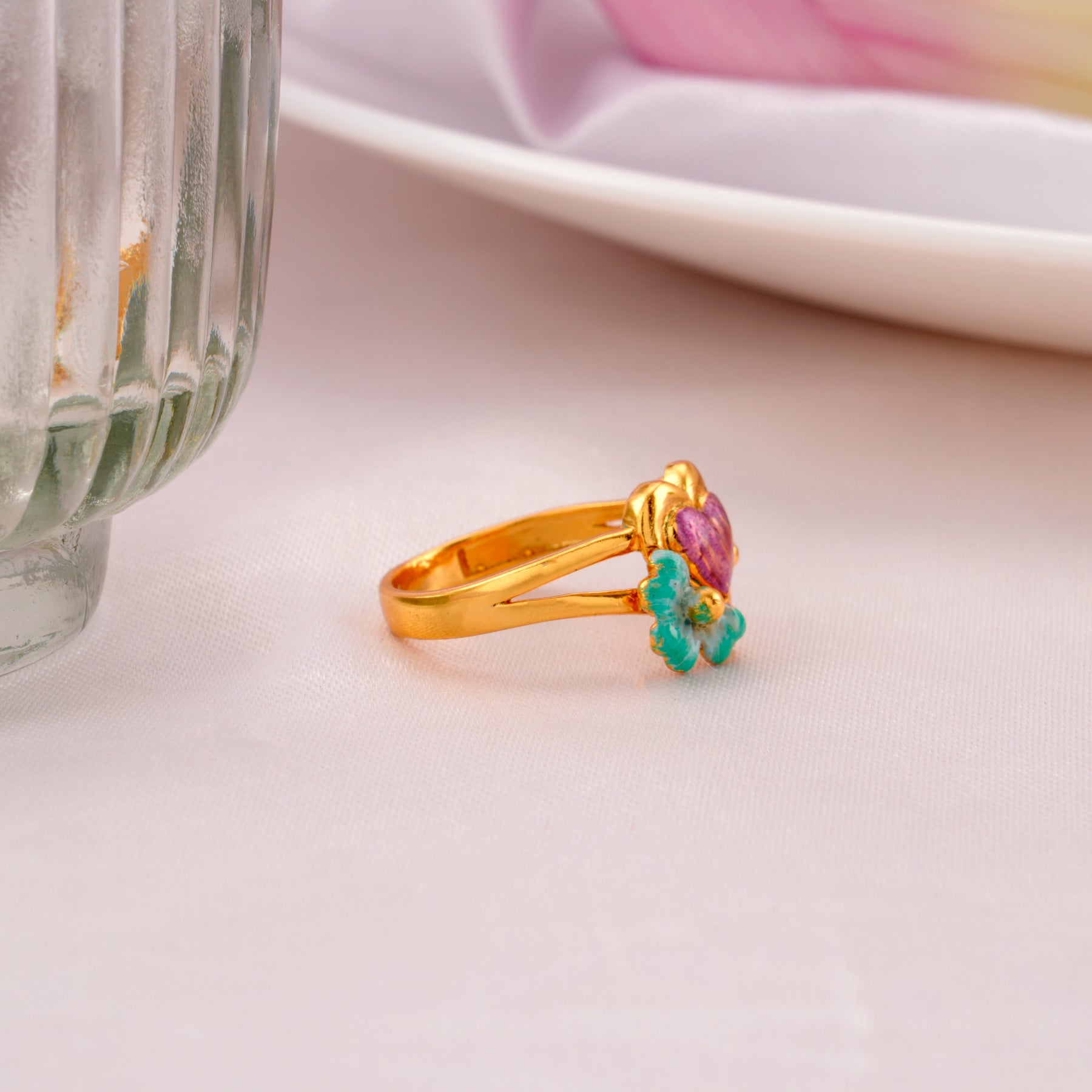 Made from 92.5 silver with gold plating, this ring features heart and floral pink enamel details for a soft feminine touch.