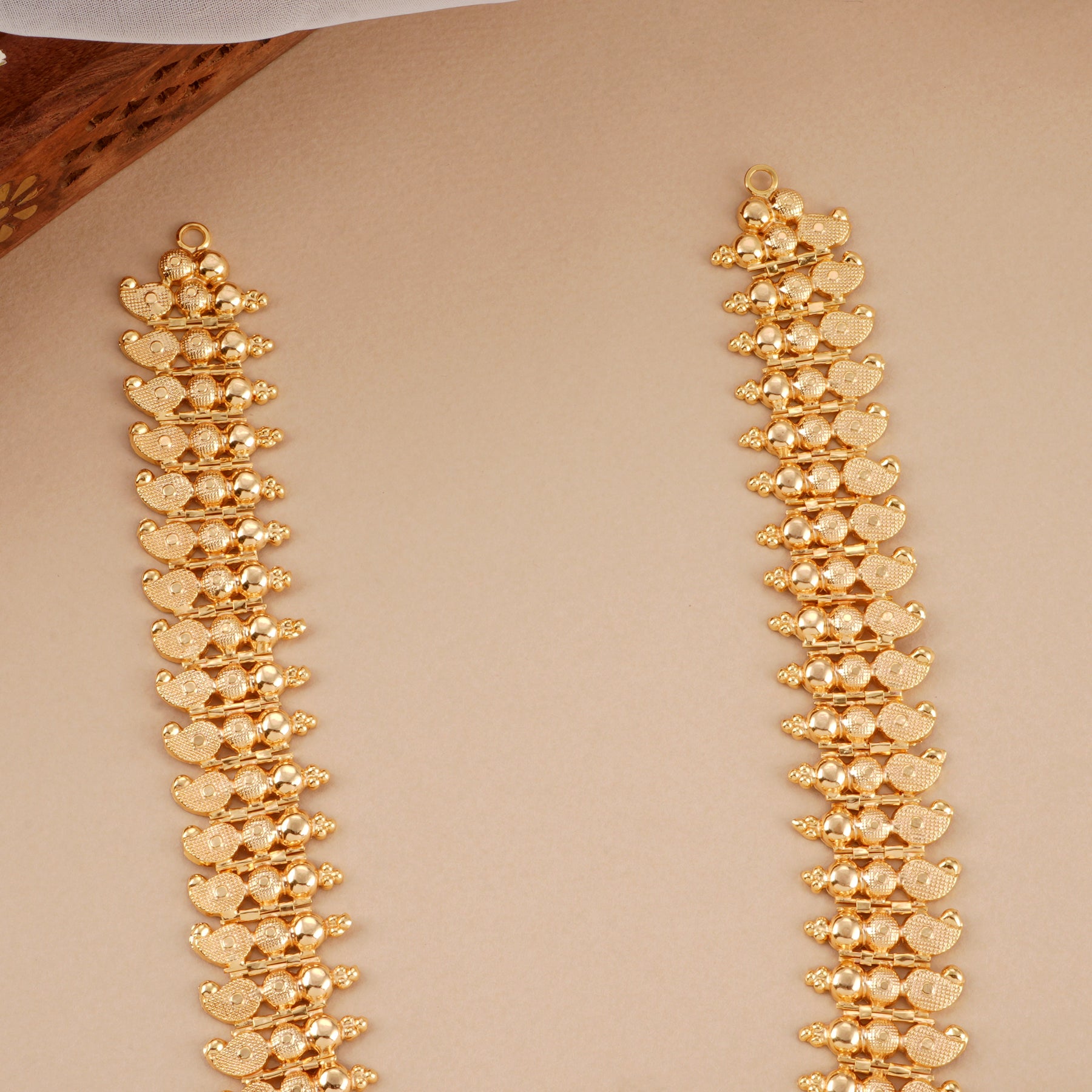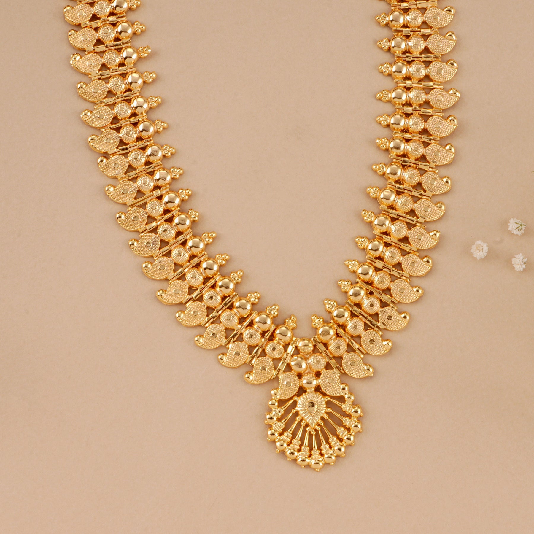 Made from 92.5 silver with gold plating, this layered kasu haram embodies classic Kerala craftsmanship, ideal for weddings and festivals.