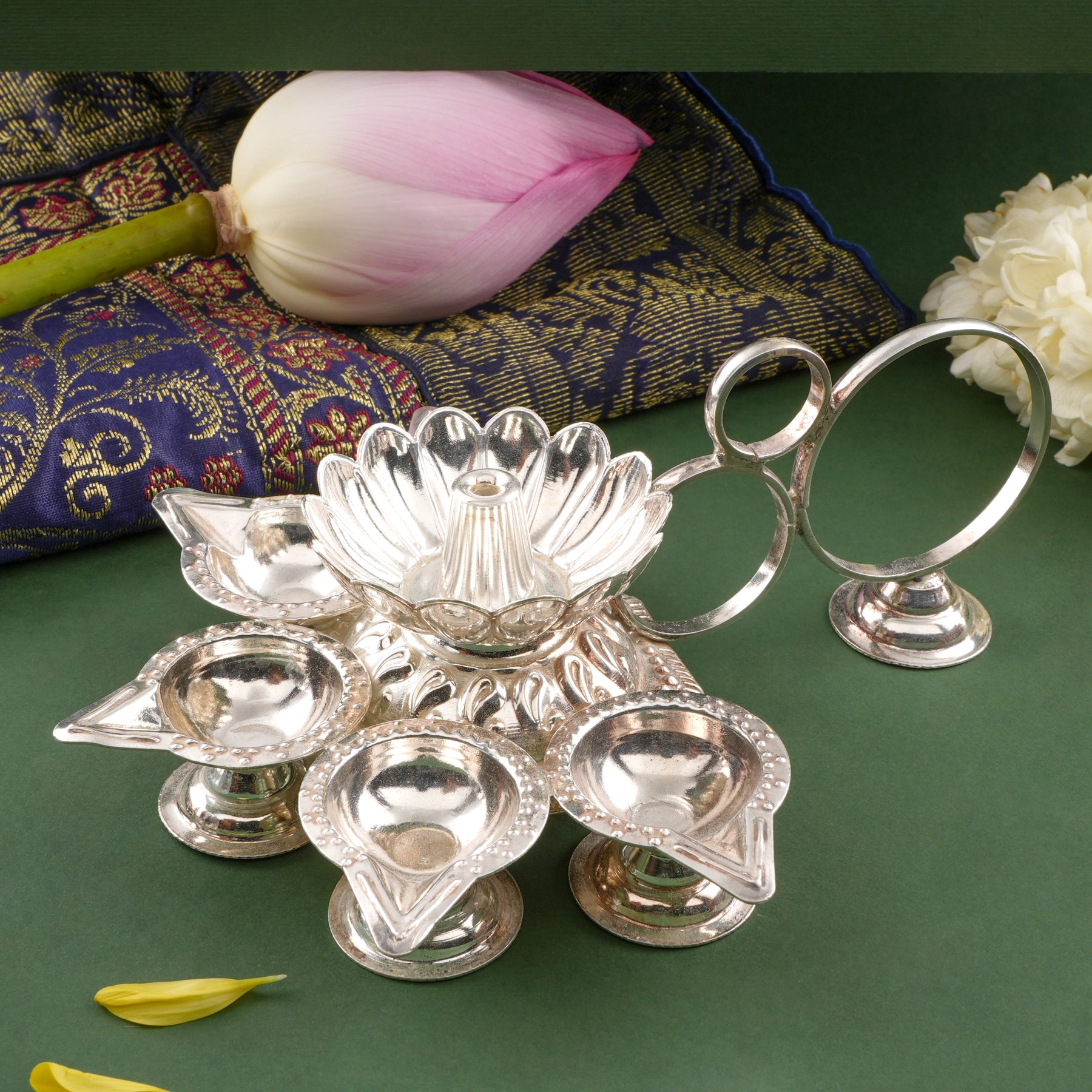 Crafted in 92.5 Sterling Silver, this Traditional Silver Aarti Lamp brings classic charm to your pooja space.