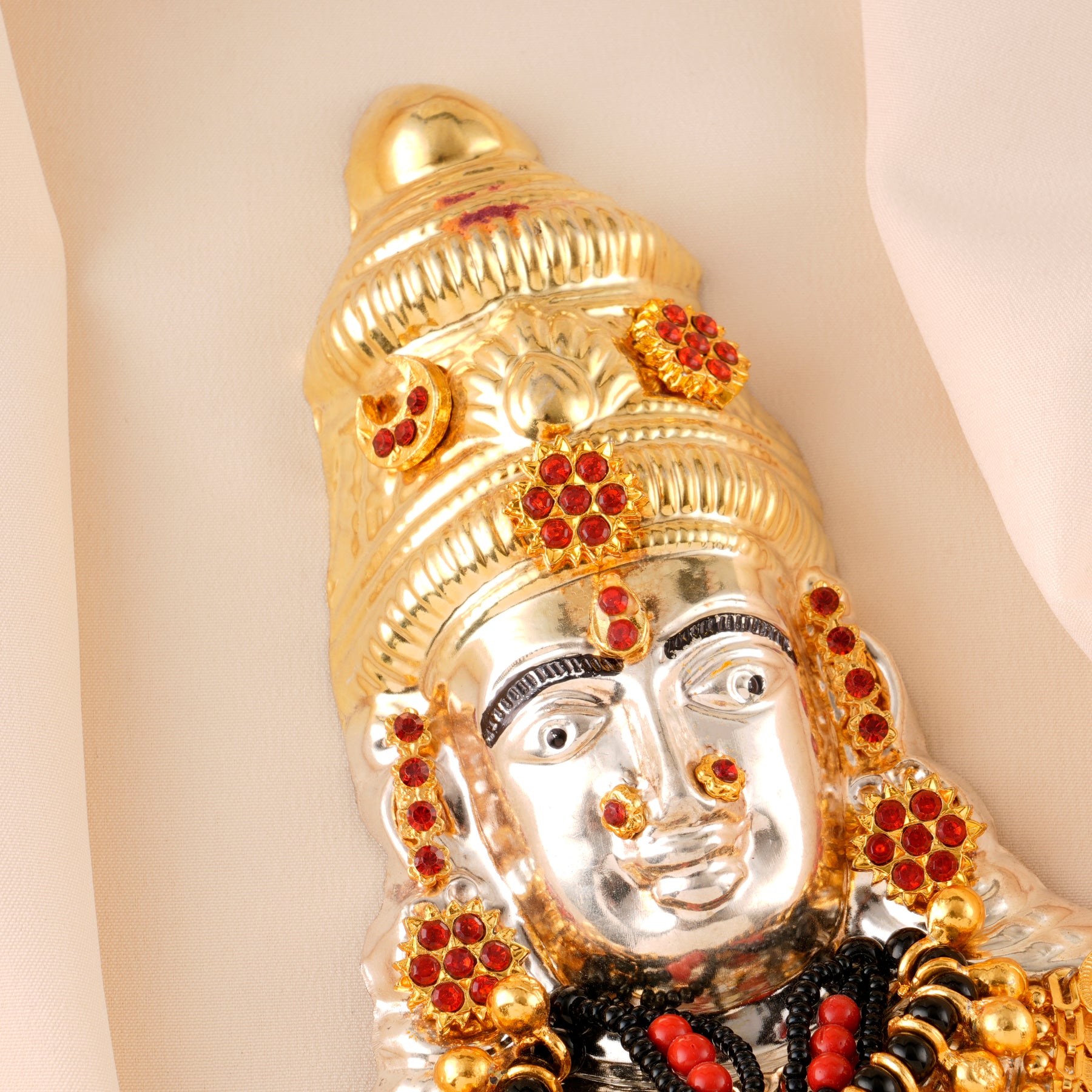 Made in 92.5 sterling silver with a gold finish, this Varalakshmi Amman idol brings blessings of wealth, happiness, and peace. The detailed design shows the goddess in all her grace.